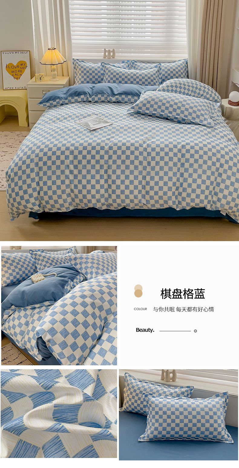当前位置: 91家纺网 > 商品网购 > 床品套件 > 四件套 > 水洗棉四件套 > 楠沐家纺 2025新款无印风亲肤柔软水洗棉磨毛学生床四件套 棋盘格蓝