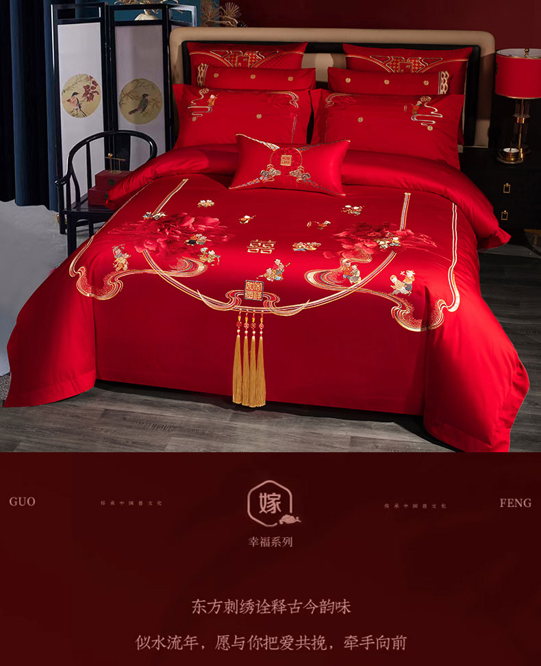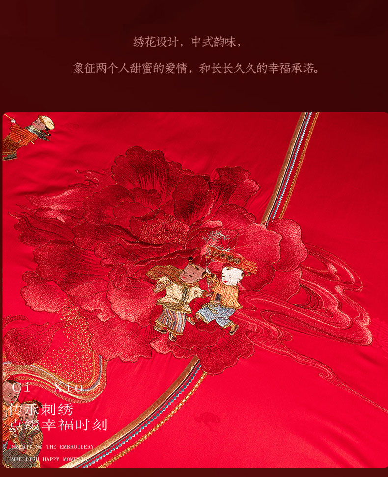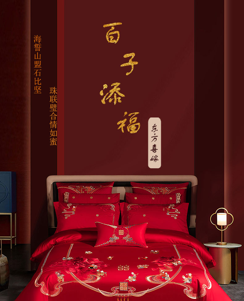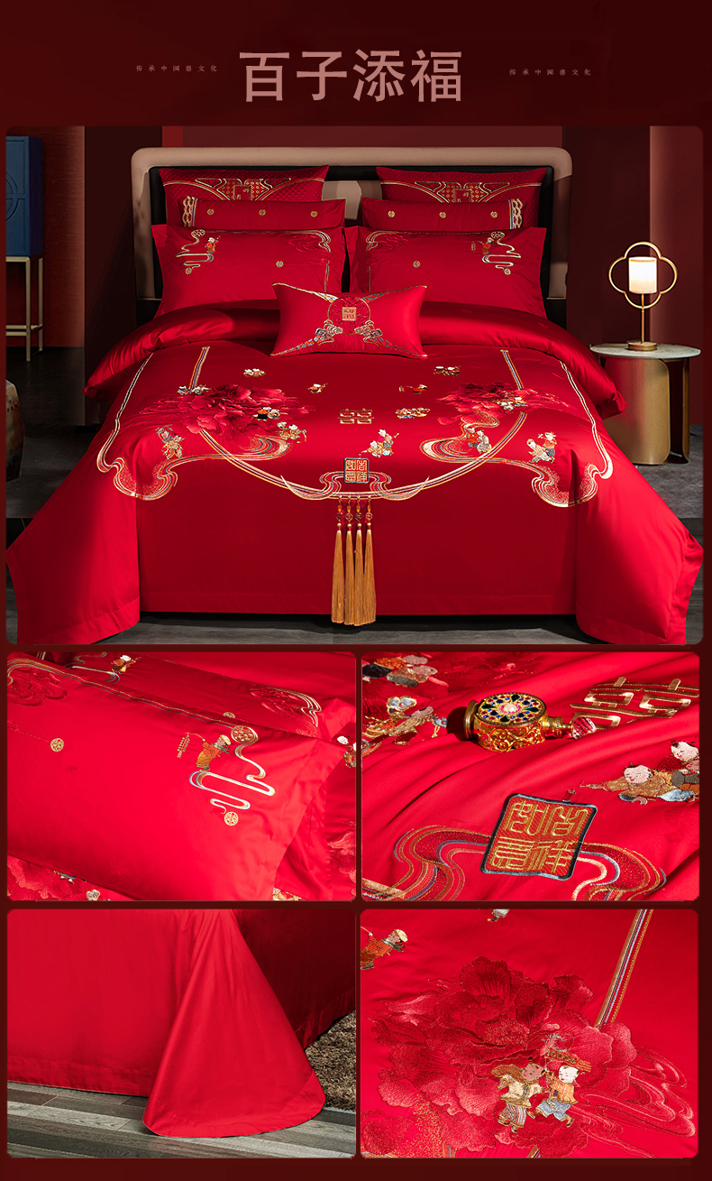 当前位置: 91家纺网 > 商品网购 > 床品套件 > 四件套 > 婚庆四件套 > 蒂爵 全棉纯棉长绒棉大绣花婚庆四件套 百子添福