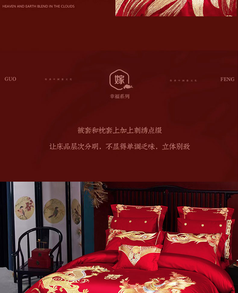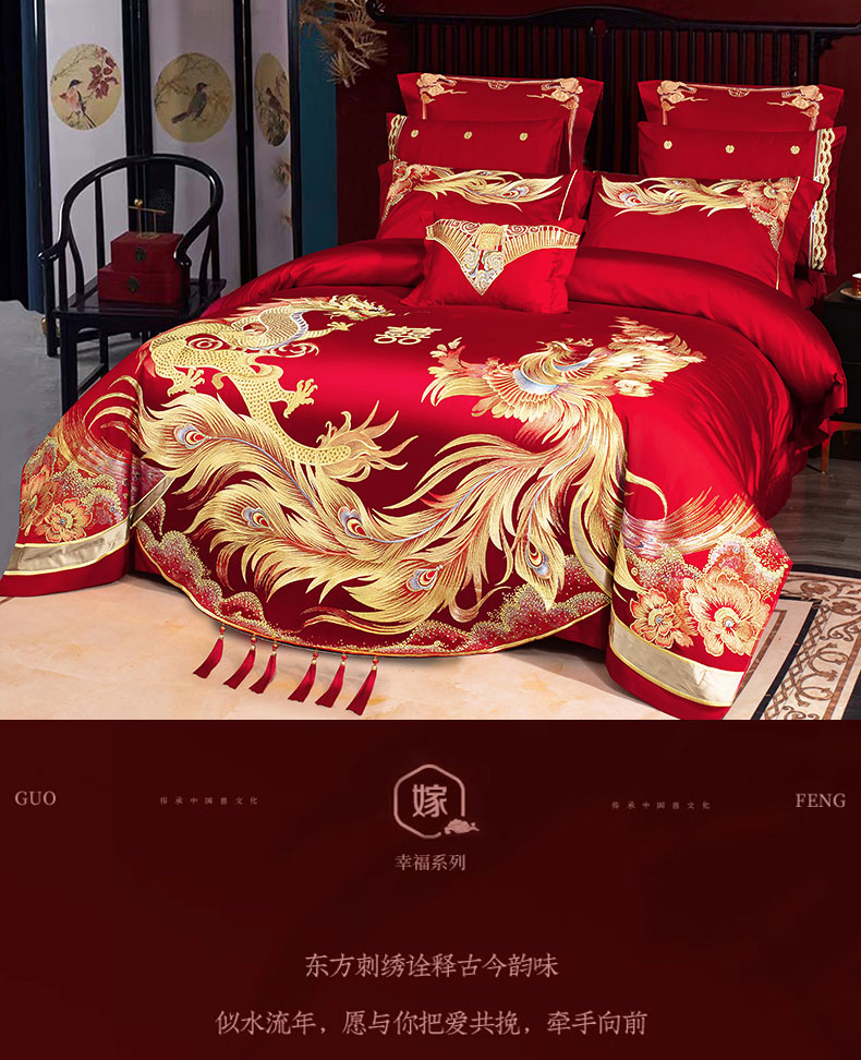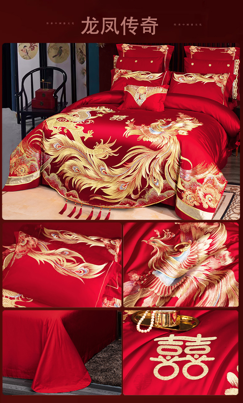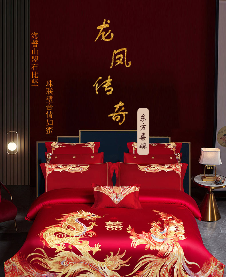 当前位置: 91家纺网 > 商品网购 > 床品套件 > 四件套 > 婚庆四件套 > 蒂爵 全棉纯棉提花顶奢重工绣花工艺款婚庆四件套多件套 龙凤传奇