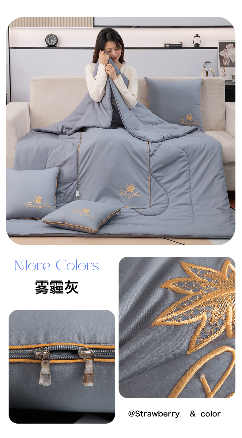 商品名称:吉利家居 2024新款全棉绣花抱枕被(四季款) 雾霾灰