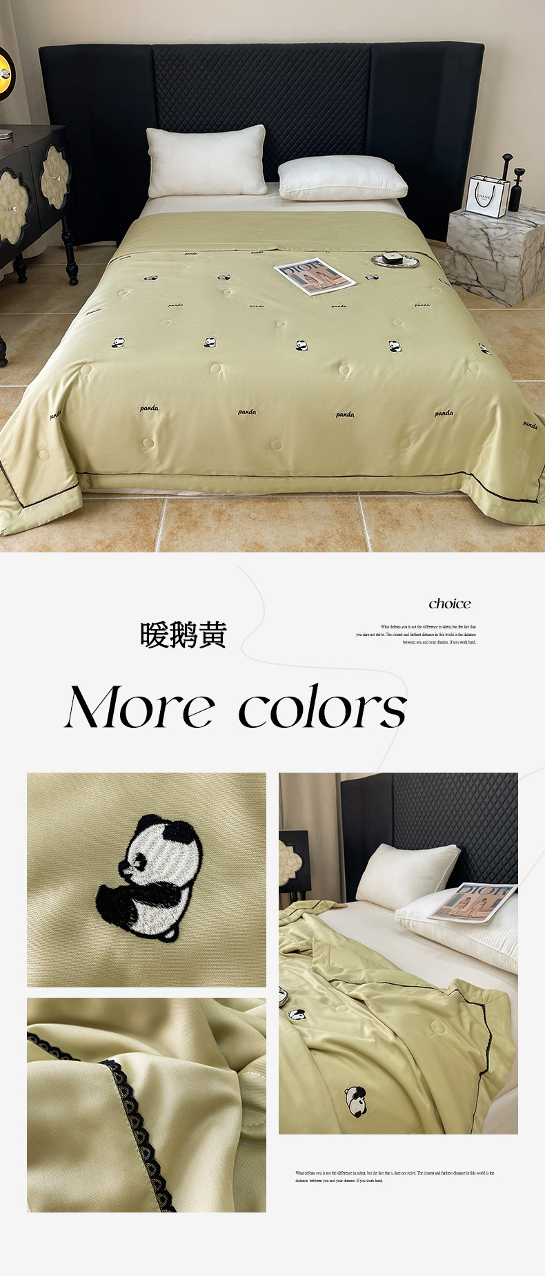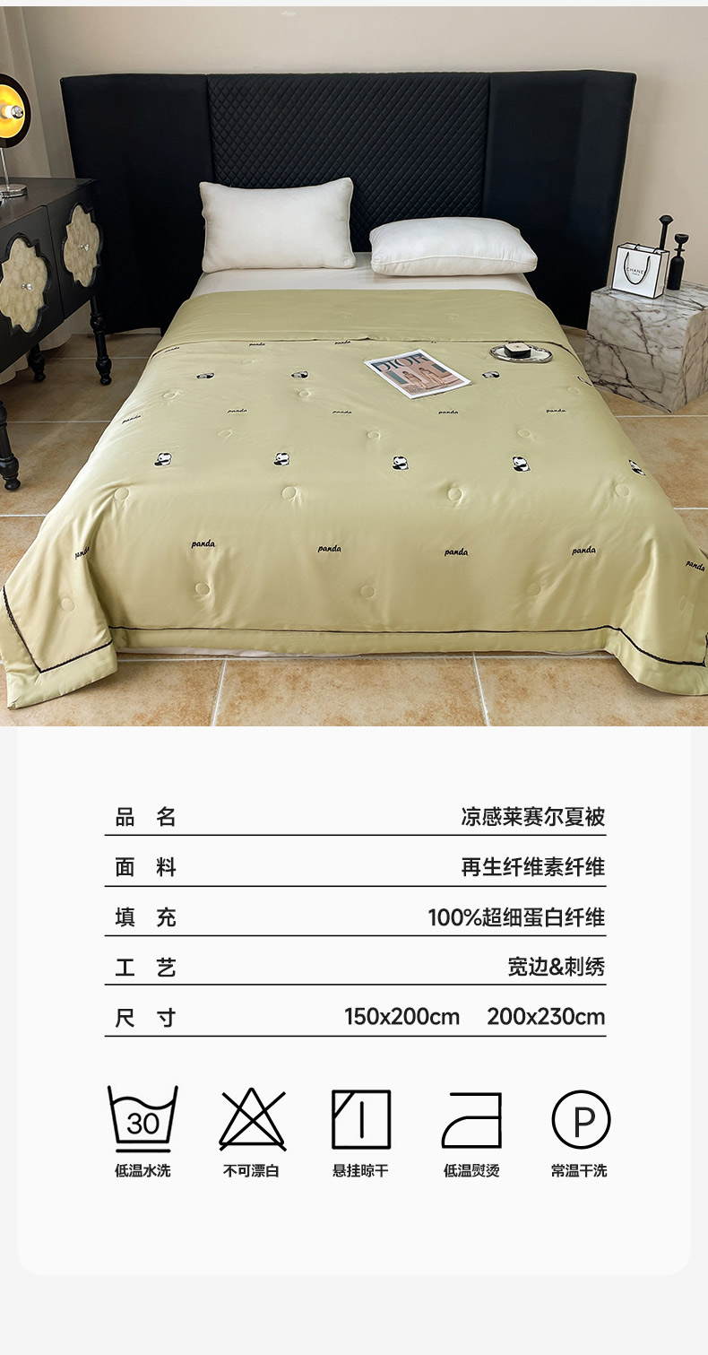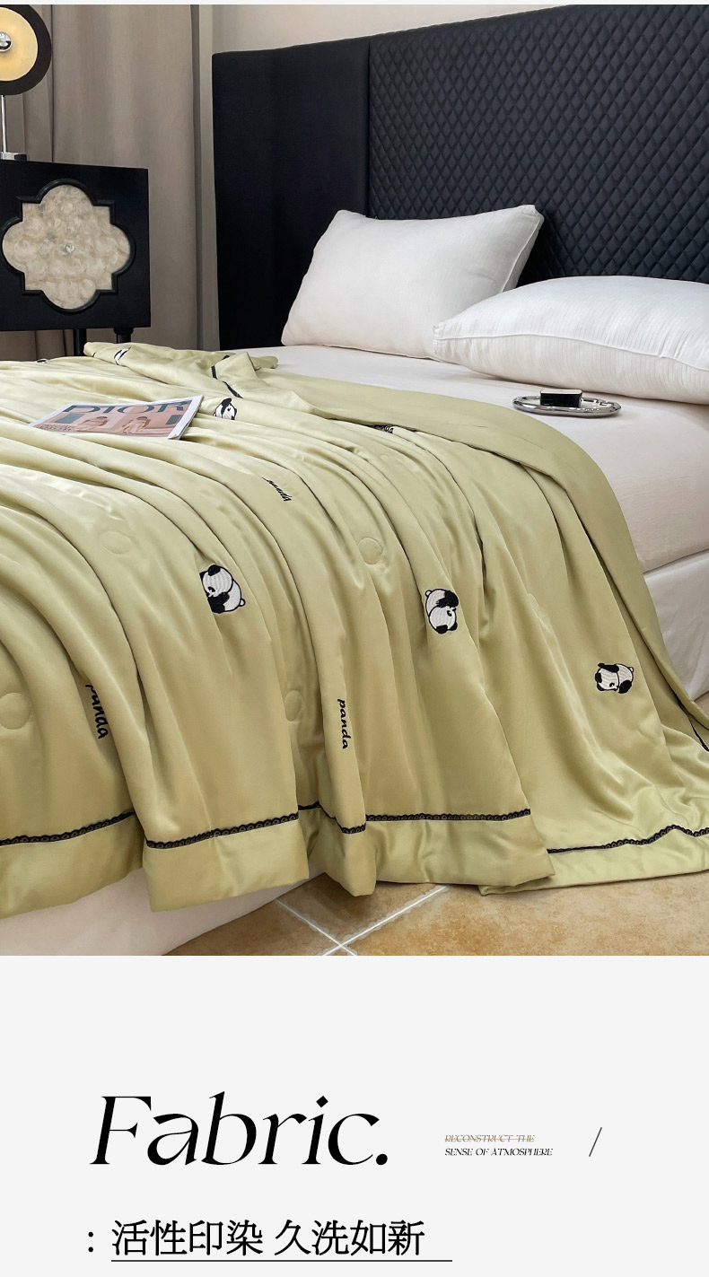 (总)被靠被 2024新款熊猫刺绣凉感莱赛尔夏被被子被芯,茶绿,甜粉,雅灰,猫眼绿,桃粉,暖鹅黄