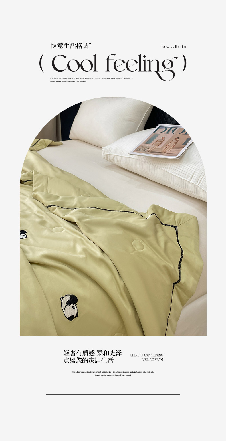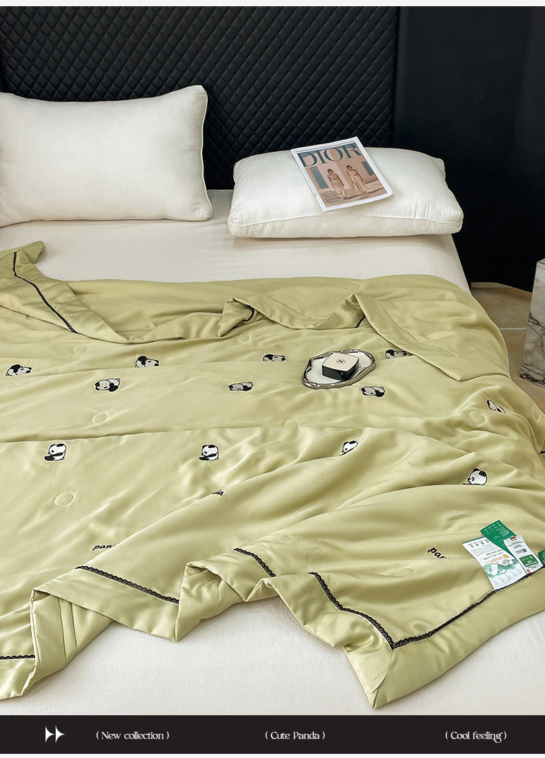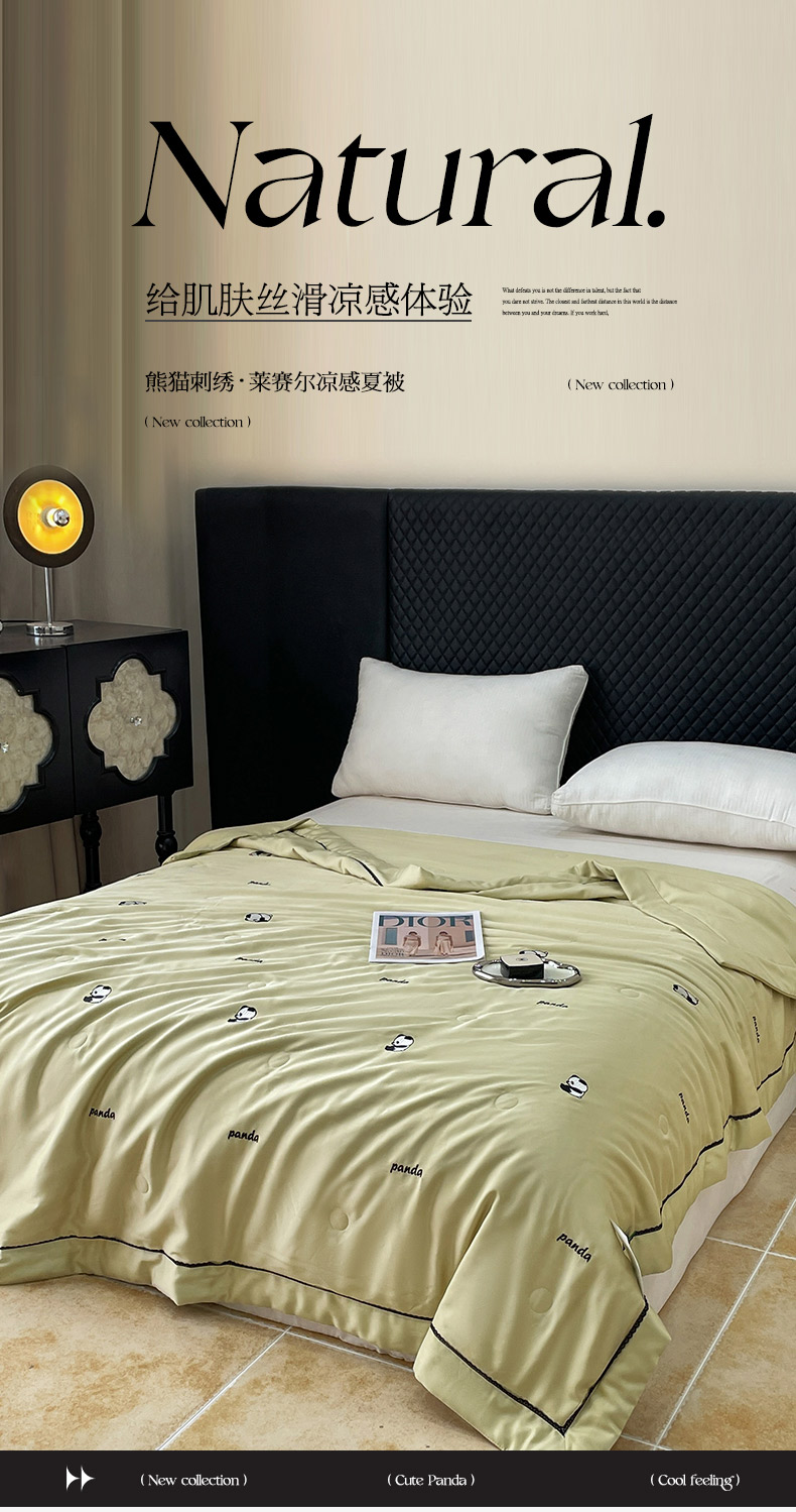 (总)被靠被 2024新款熊猫刺绣凉感莱赛尔夏被被子被芯,茶绿,甜粉,雅灰,猫眼绿,桃粉,暖鹅黄