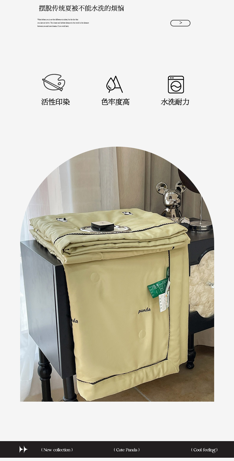 商品名称:被靠被 2024新款熊猫刺绣凉感莱赛尔夏被被子被芯 暖鹅黄