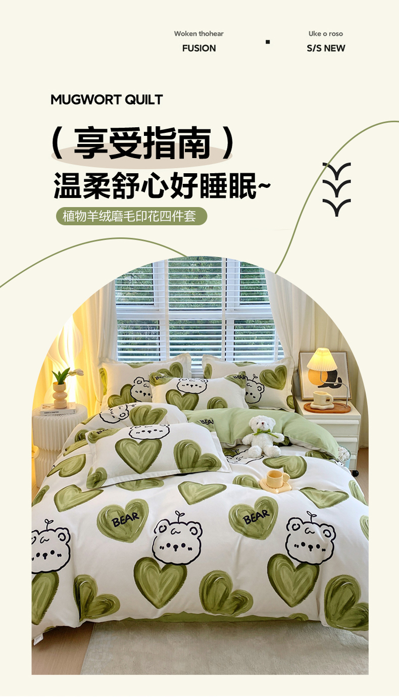 当前位置: 91家纺网 > 商品网购 > 床品套件 > 四件套 > 普通磨毛四件套 > 金丝兔 2025新款植物羊绒加厚磨毛印花四件套直播热款全年供货量大可送 抱抱熊