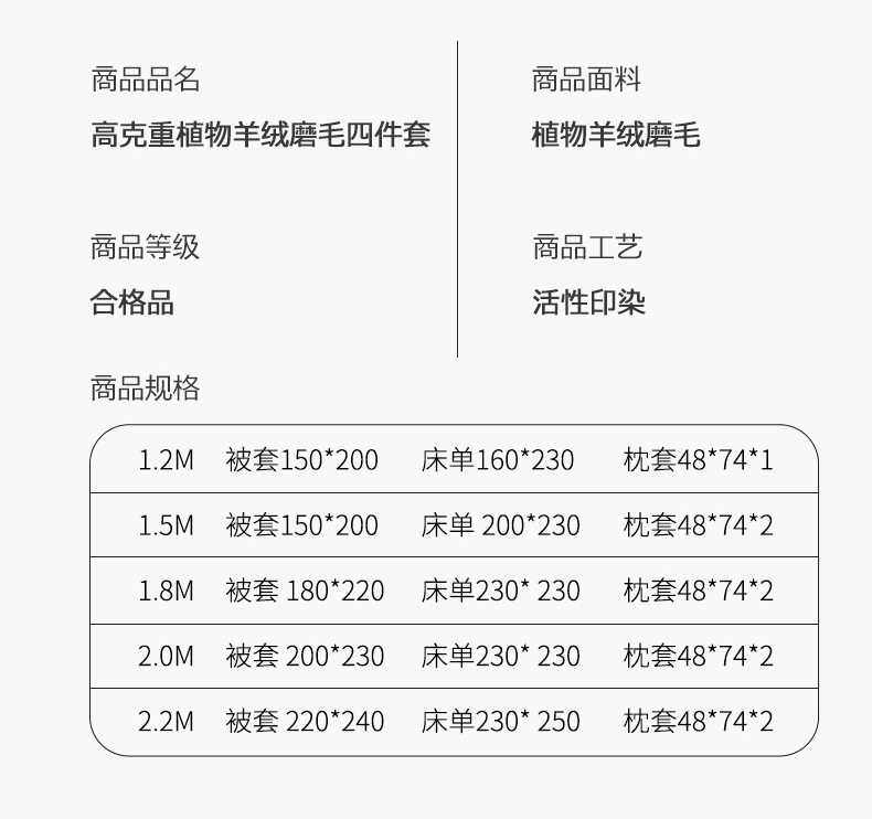 1.5m床笠款四件套(被套200×230cm) | ¥45.00 |
