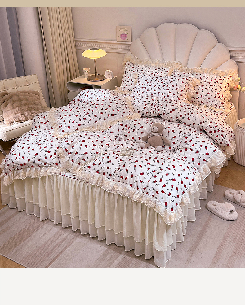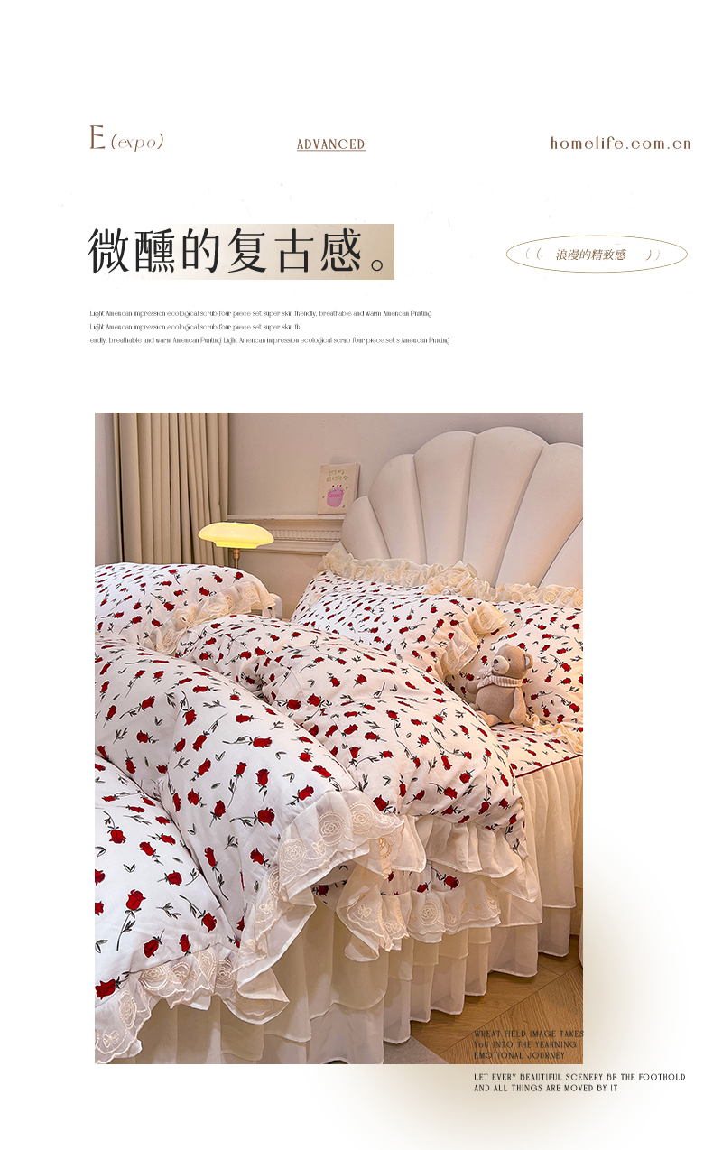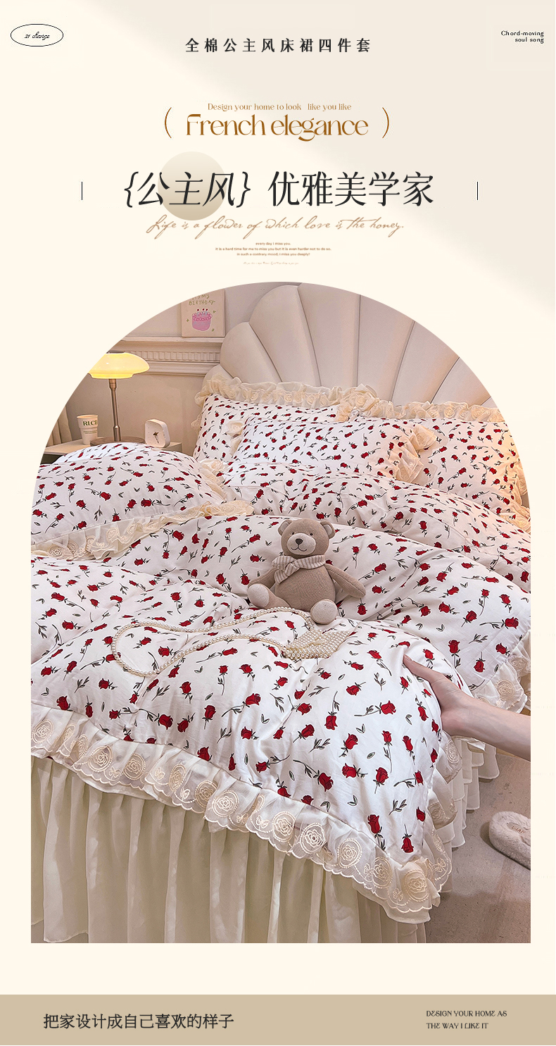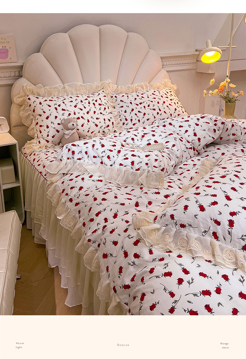 当前位置: 91家纺网 > 商品网购 > 床品套件 > 四件套 > 全棉普通四件套 > 恒爱家纺 2024新款梦幻情缘全棉公主风四件套 挚爱