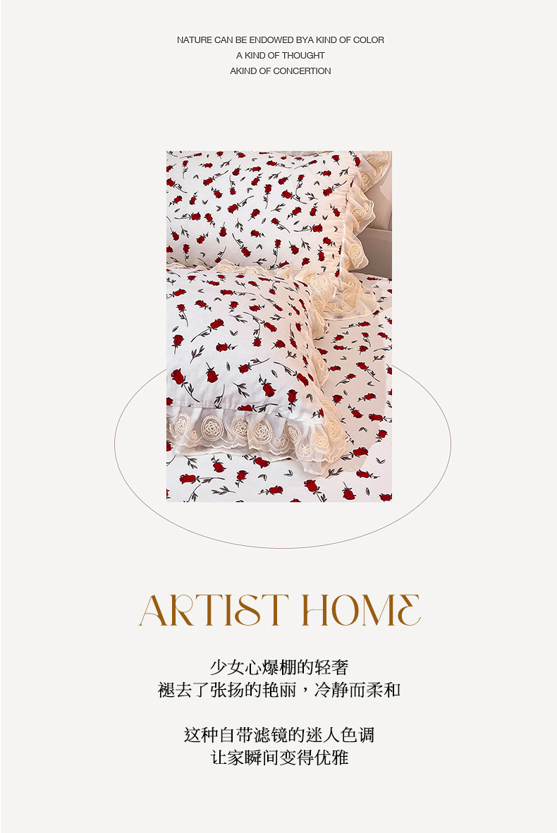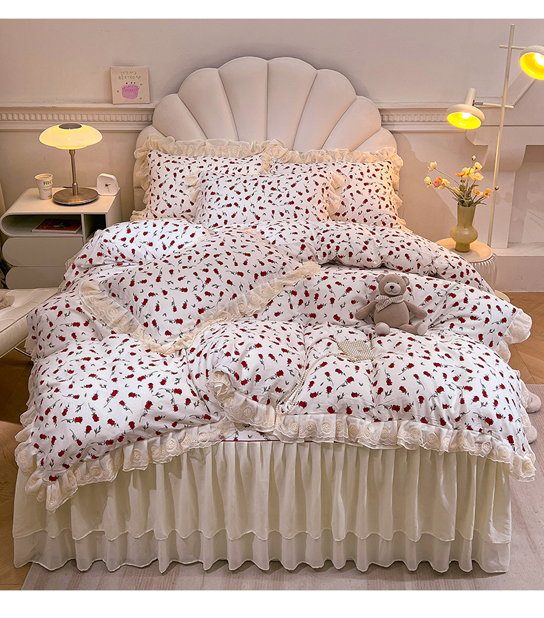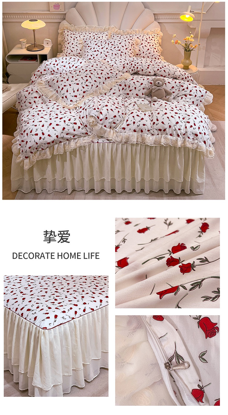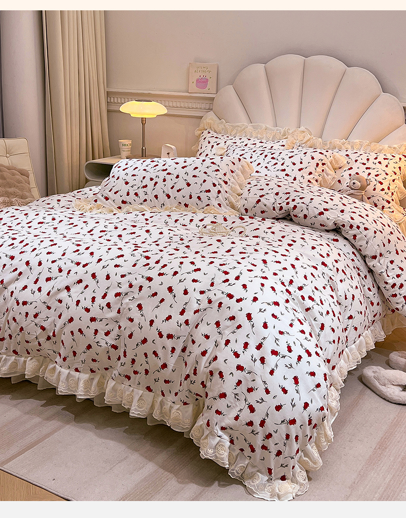 当前位置: 91家纺网 > 商品网购 > 床品套件 > 四件套 > 全棉普通四件套 > 恒爱家纺 2024新款梦幻情缘全棉公主风四件套 挚爱