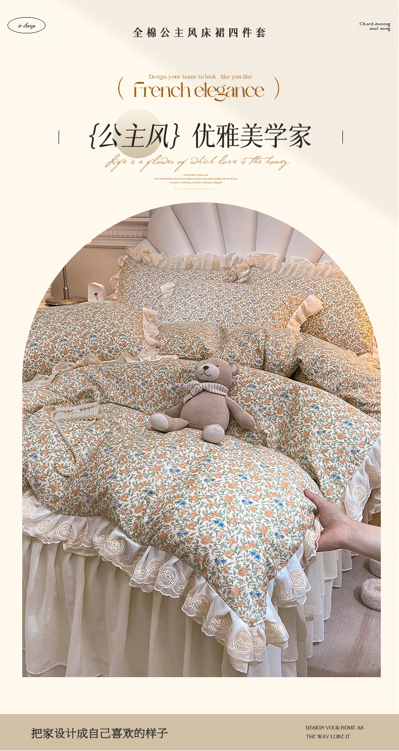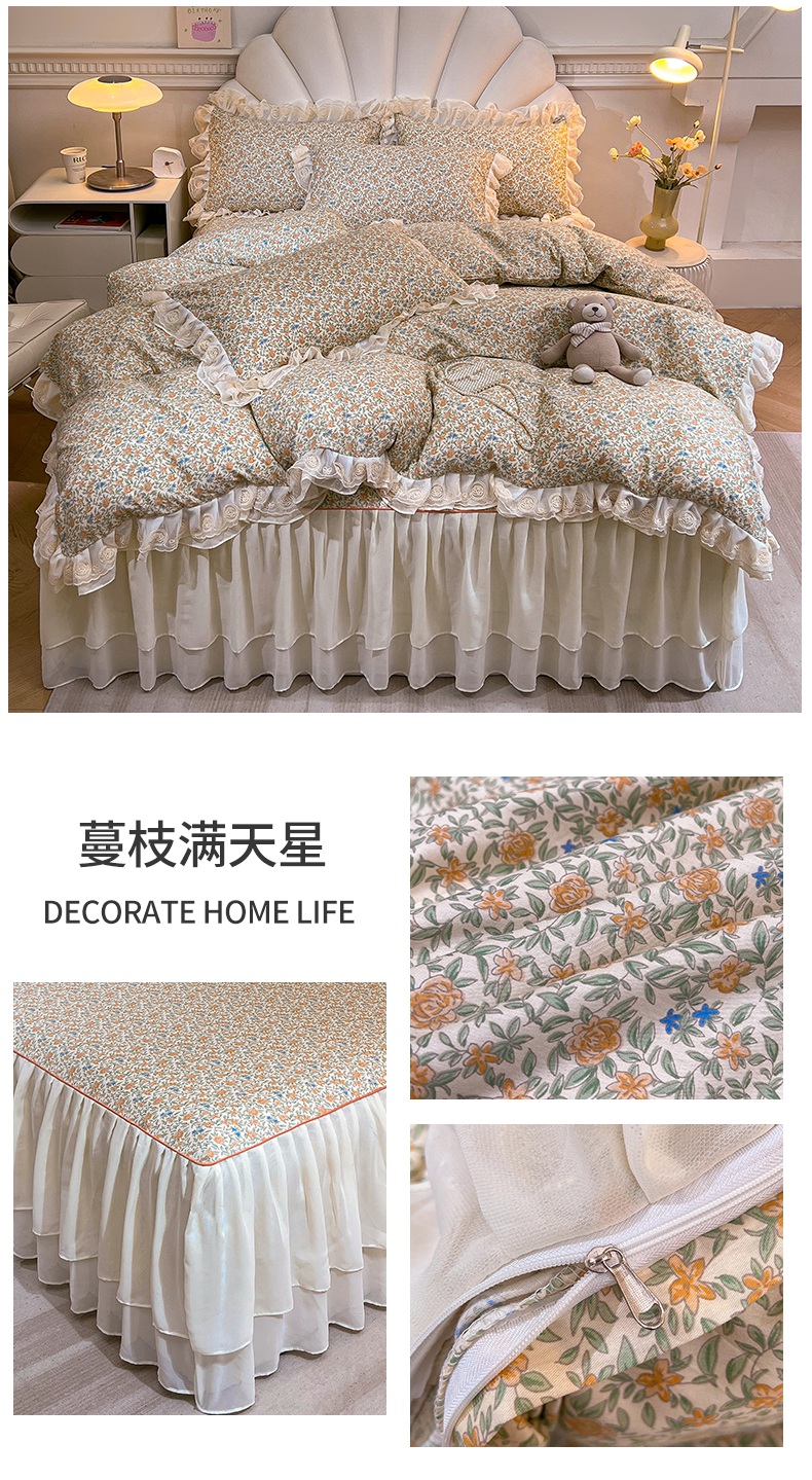 当前位置: 91家纺网 > 商品网购 > 床品套件 > 四件套 > 全棉普通四件套 > 恒爱家纺 2024新款梦幻情缘全棉公主风四件套 蔓枝满天星
