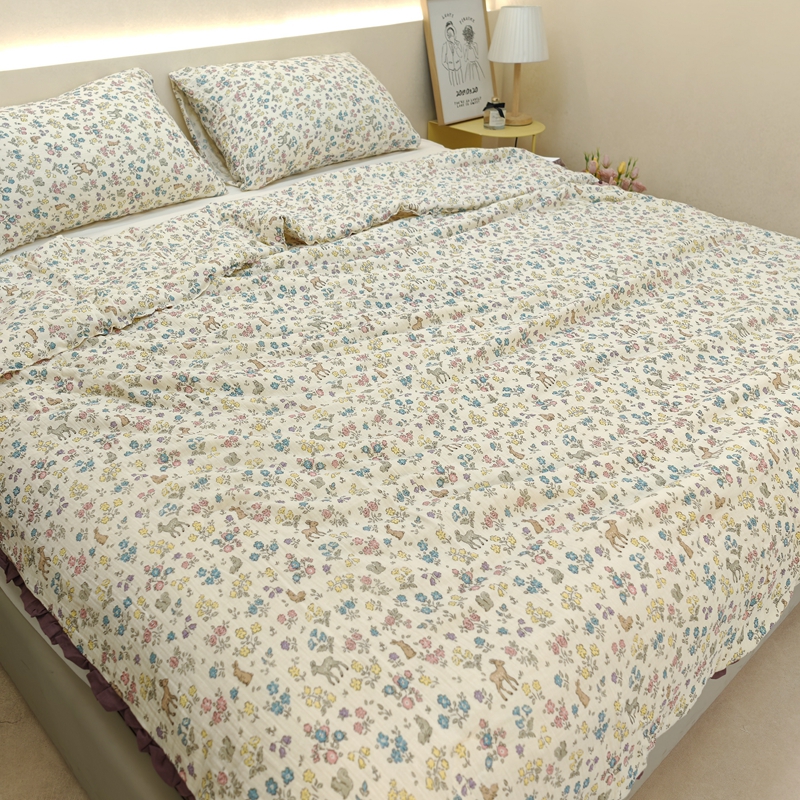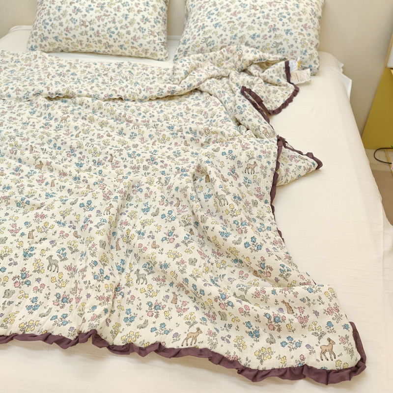 (总)有货 2023新款韩式棉麻泡泡纱印花四季被,艾薇,浪漫,青柠,森林兔,森屿,树莓,桃夭,小可爱,伊甸,樱粟