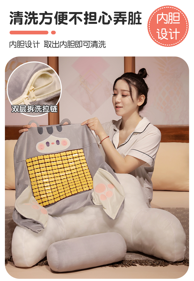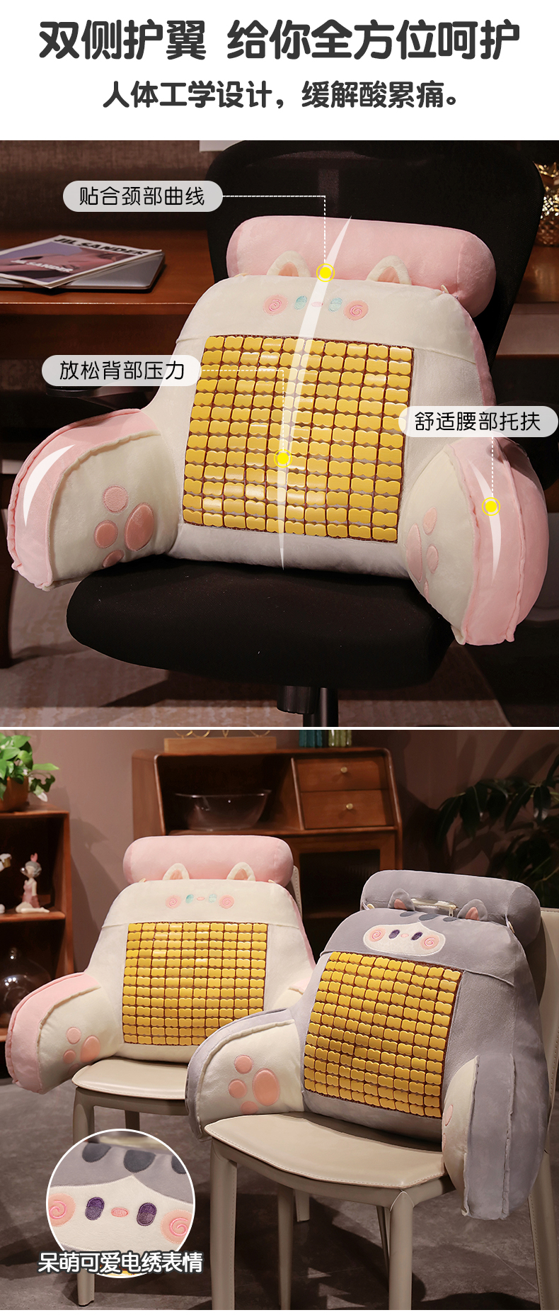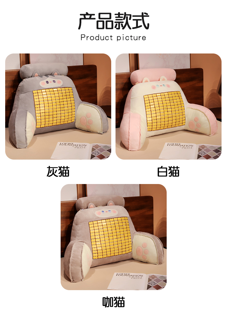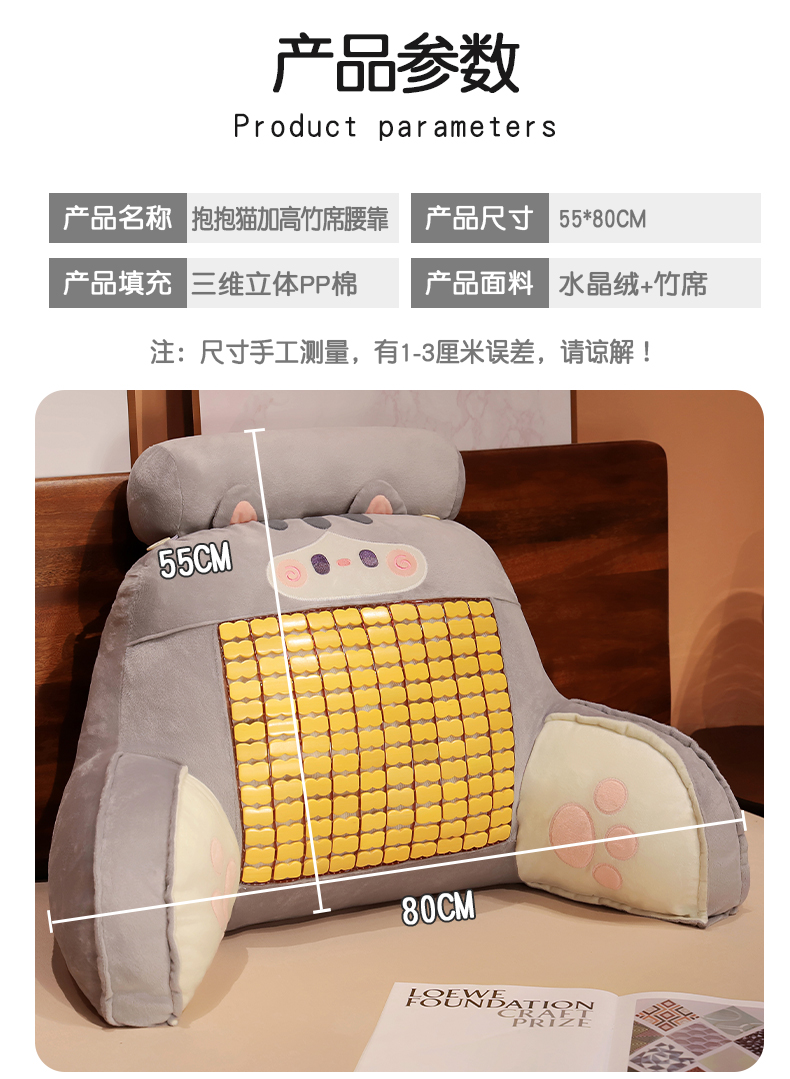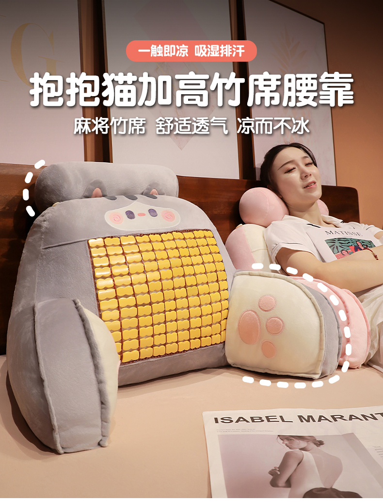 商品名称:仟亿莱 2024新款抱抱猫加高竹席拥抱式腰靠 竹席灰猫拥抱