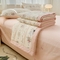 (总)金丝鸟家纺 2026新款纯棉全棉双层纱刺绣花边款四件套,浅星纱 粉,兔隐织
