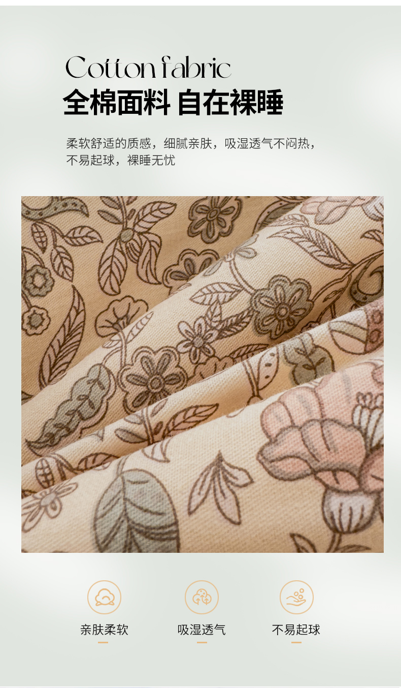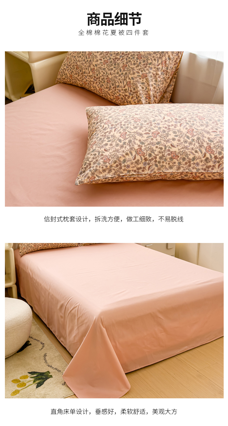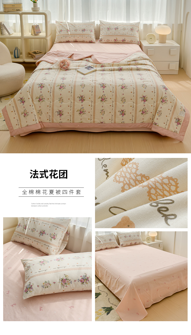 商品名称:金丝鸟家纺 2024新款全棉棉花夏被四件套 法式花团