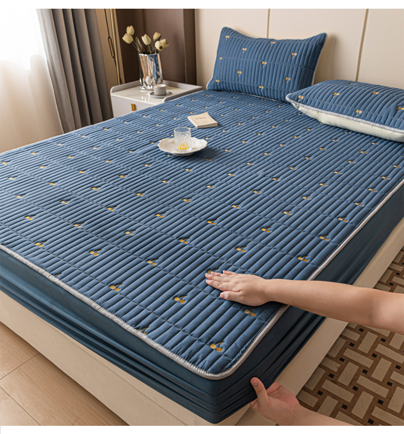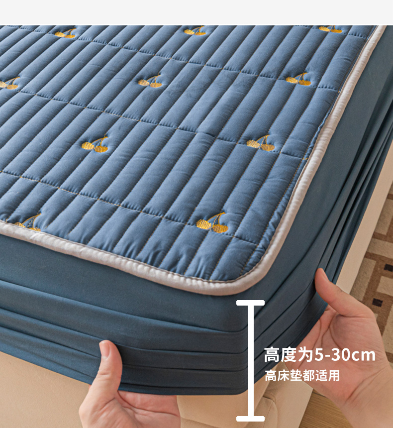 暖季家纺 2025新款磨毛刺绣款床笠 小樱桃-宾利蓝