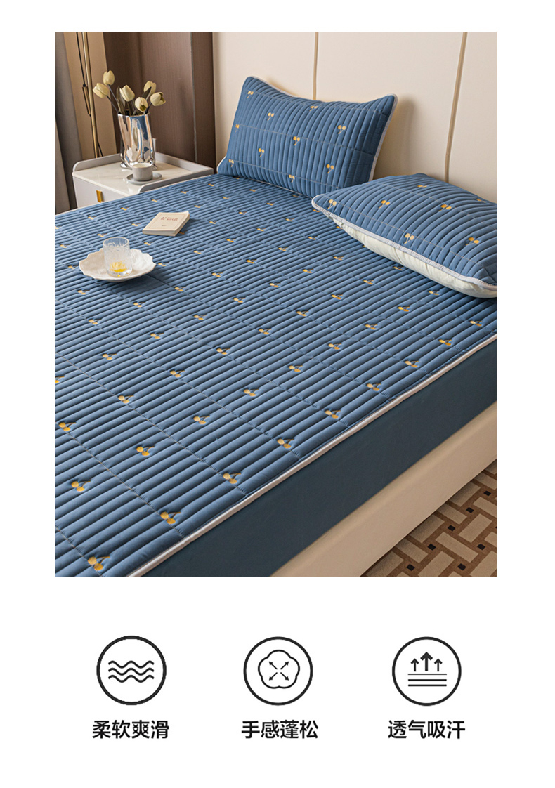 • 91家纺网 家纺一手货源 找家纺 暖季家纺 2025新款磨毛刺绣款床笠 小樱桃-宾利蓝