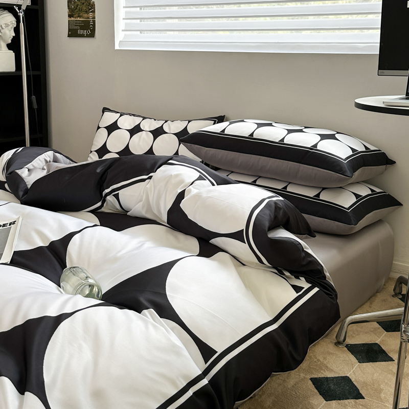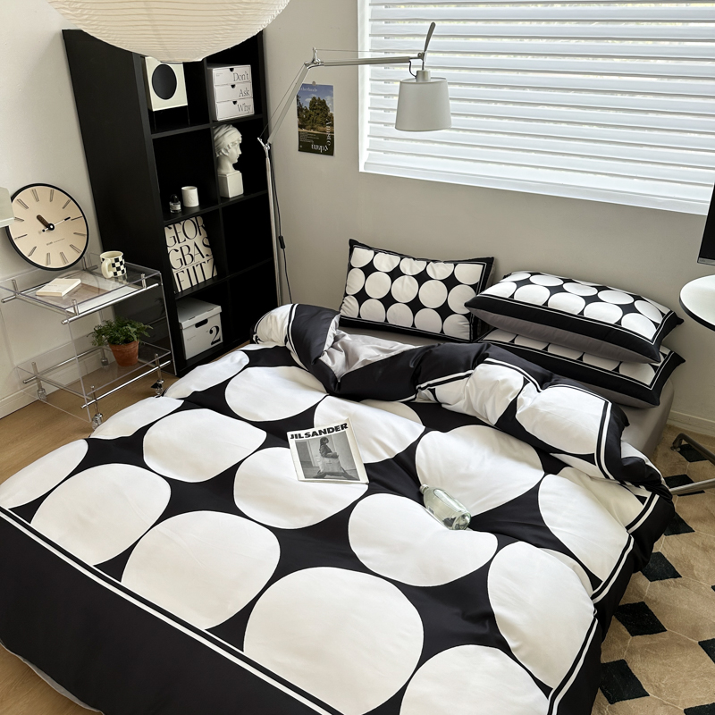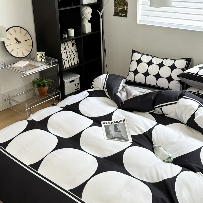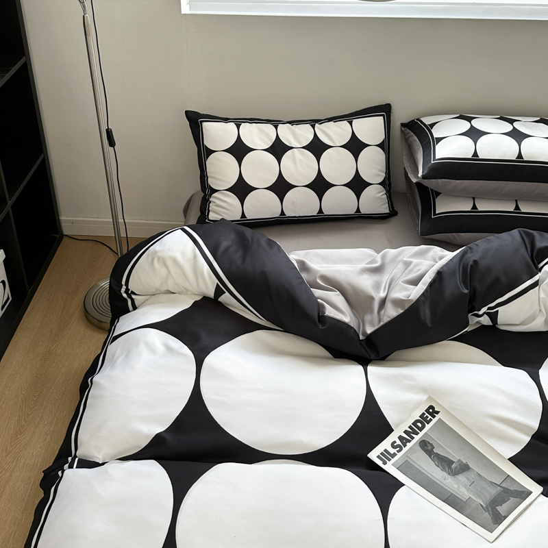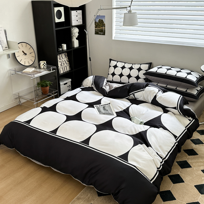 摩卡 2024春夏新品进口水洗真丝现代简约系列四件套 圆舞曲-黑