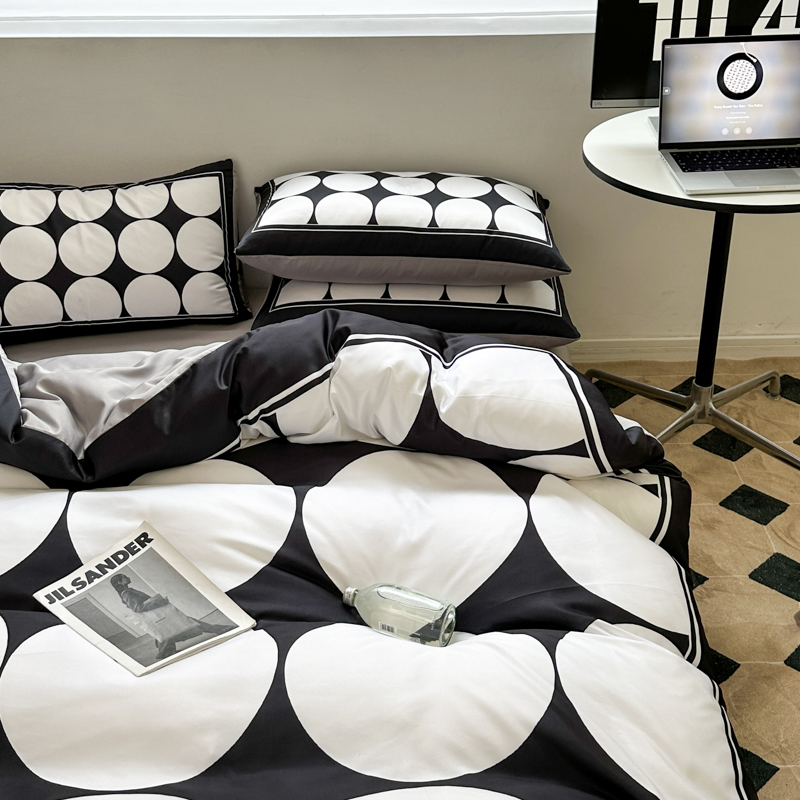 商品名称:摩卡 2024春夏新品进口水洗真丝现代简约系列四件套 圆舞曲-黑
