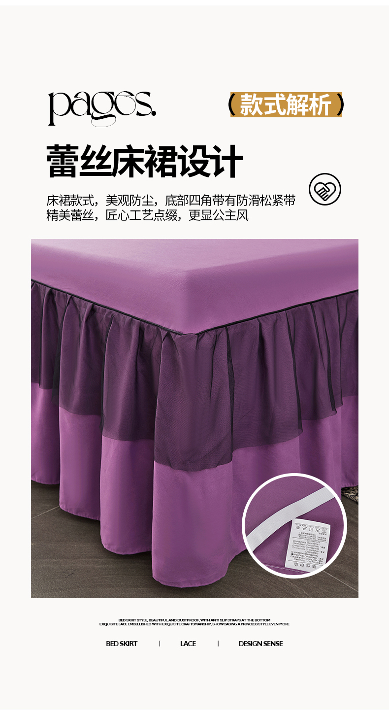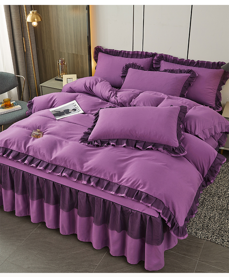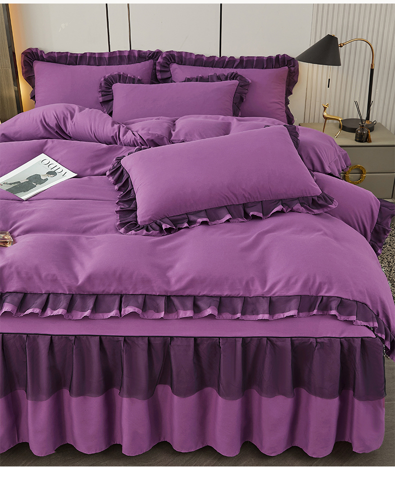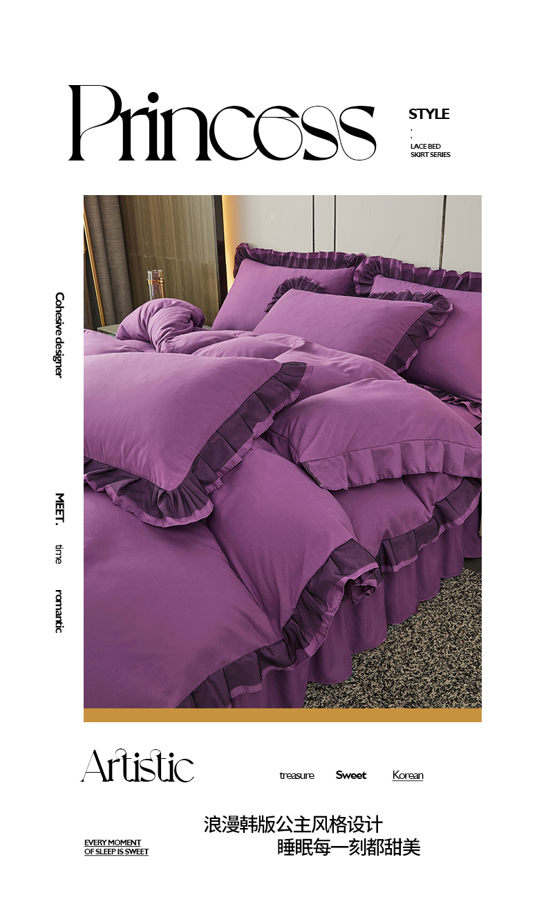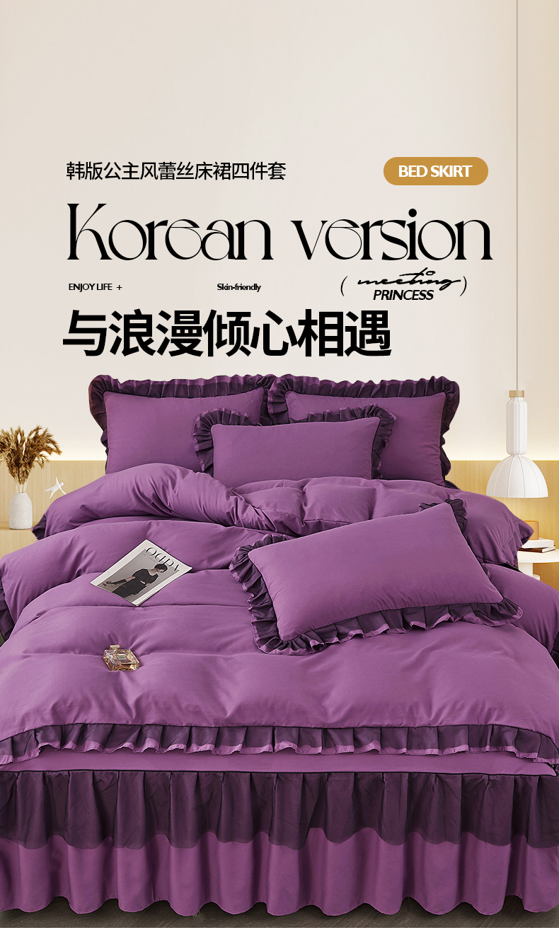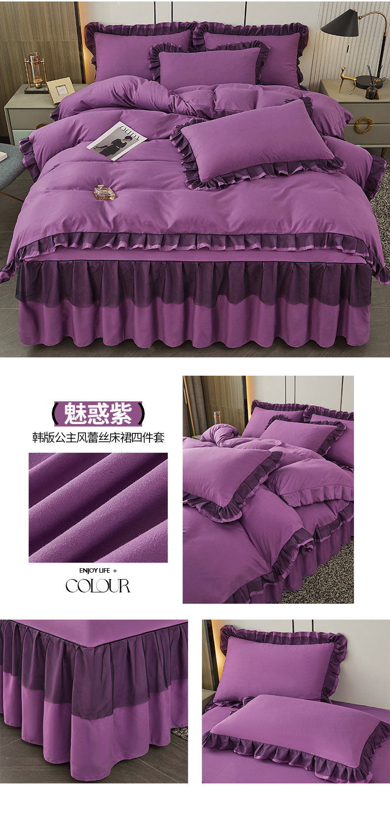 优家居 2024新款直播爆款韩版公主风蕾丝床裙四件套 魅惑紫