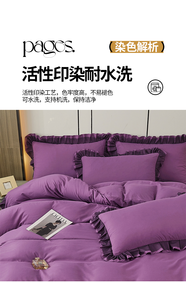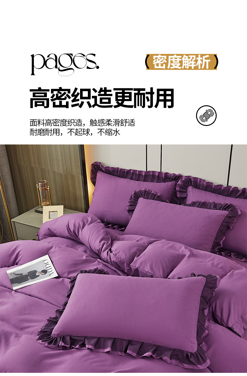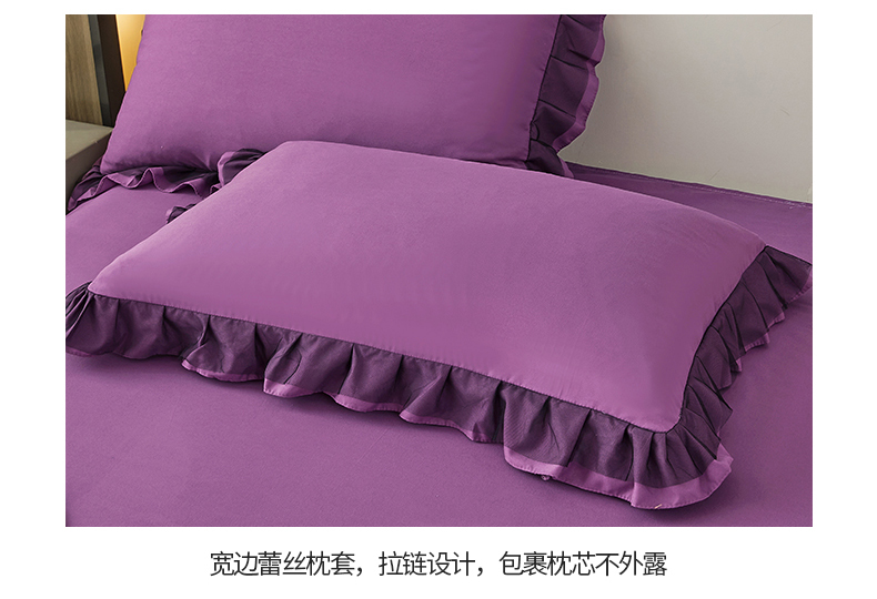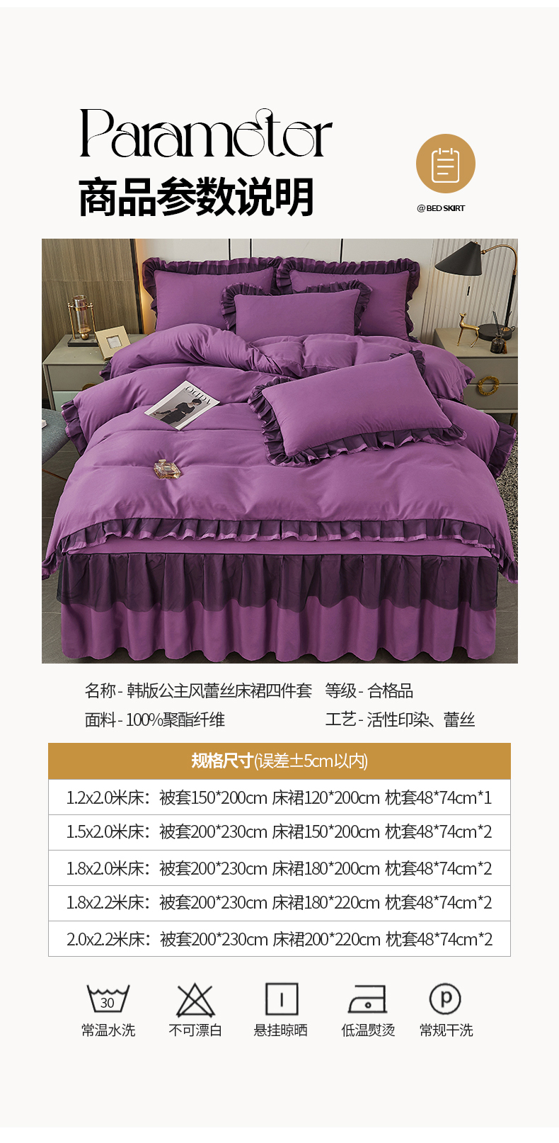 商品名称:优家居 2024新款直播爆款韩版公主风蕾丝床裙四件套 魅惑紫