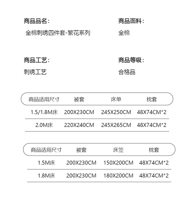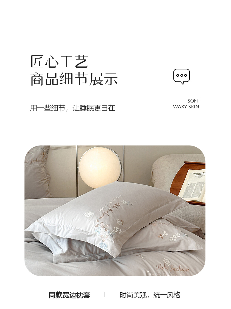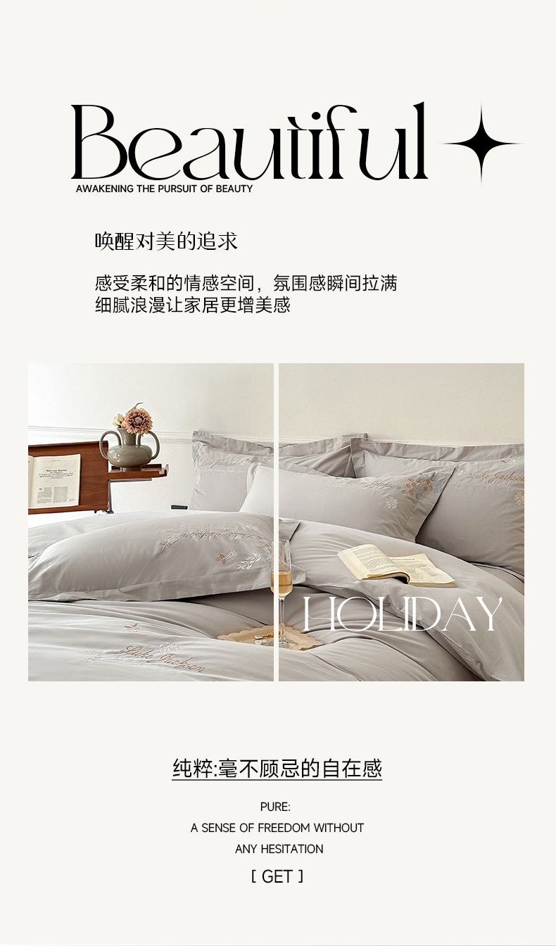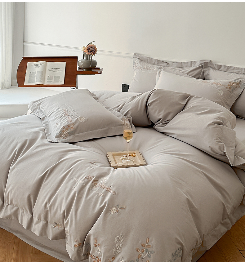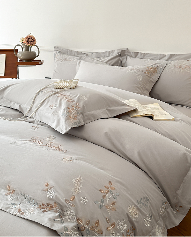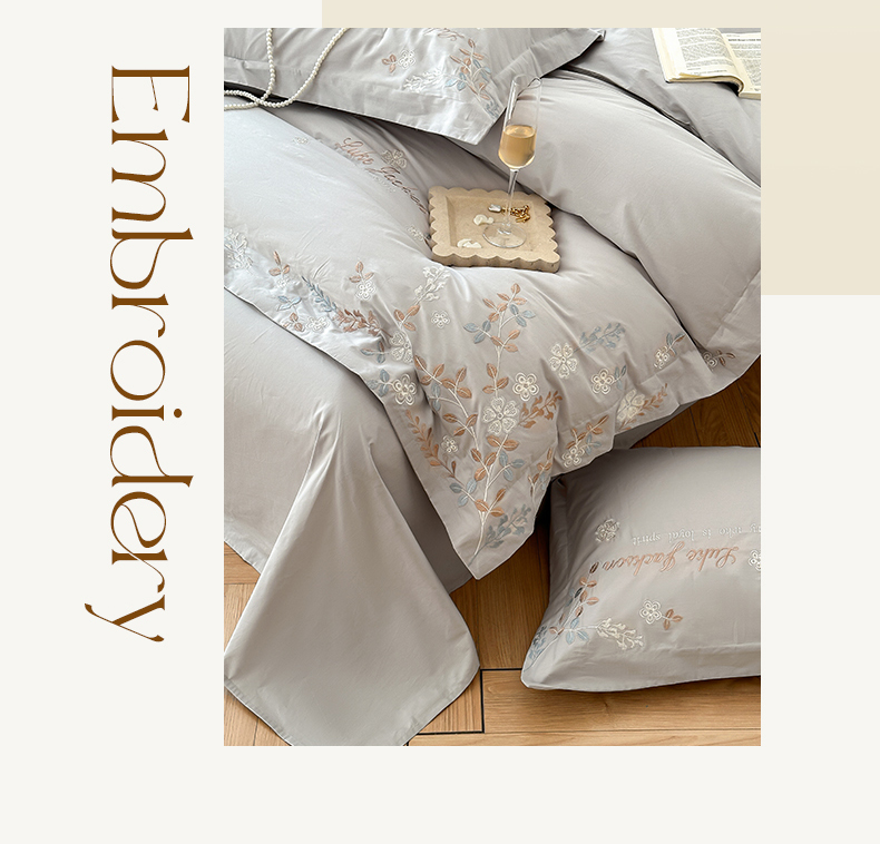 商品名称:金牛座 2025新款A类长绒棉全棉刺绣四件套【配礼盒】 繁花-烟灰