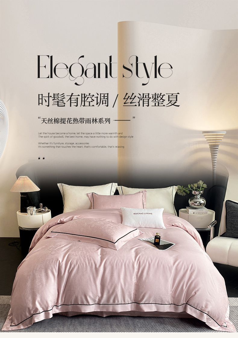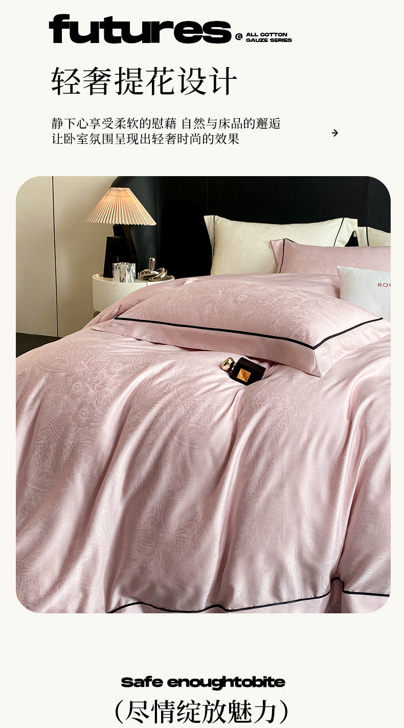 魅都 2025新款天丝棉提花热带雨林四件套 粉豆沙