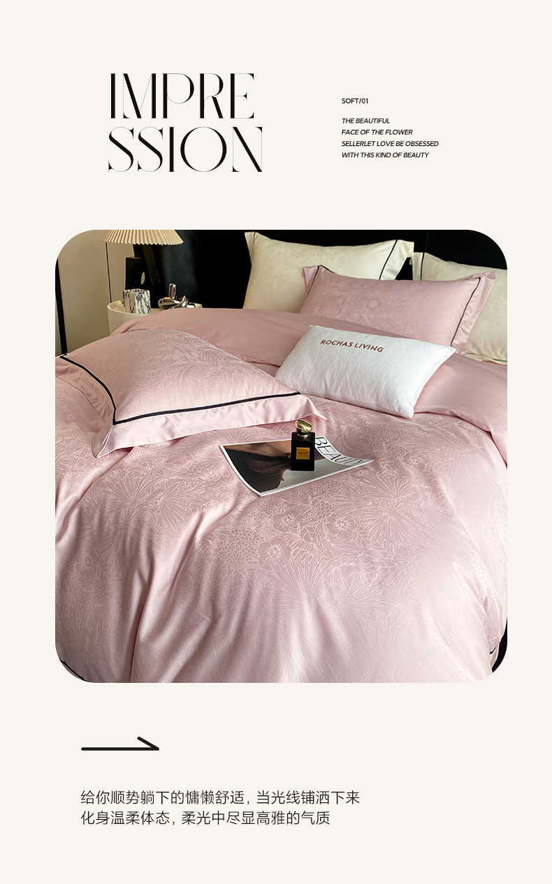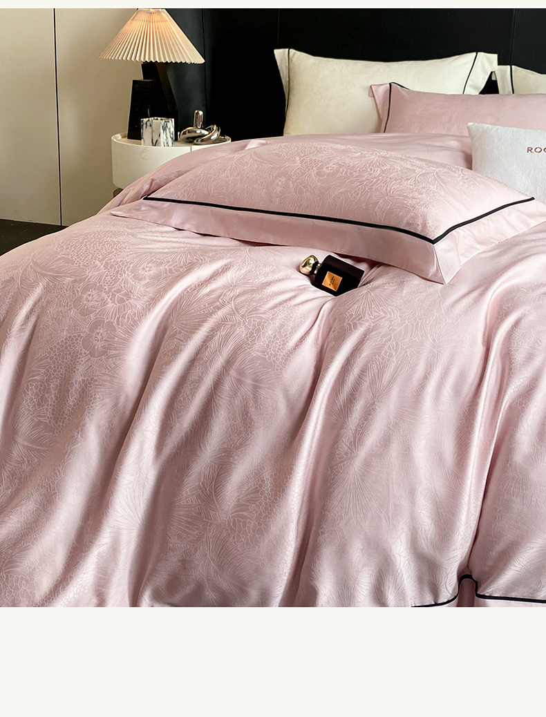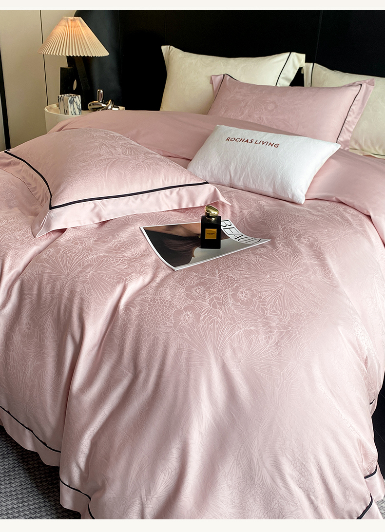 商品名称:魅都 2025新款天丝棉提花热带雨林四件套 粉豆沙