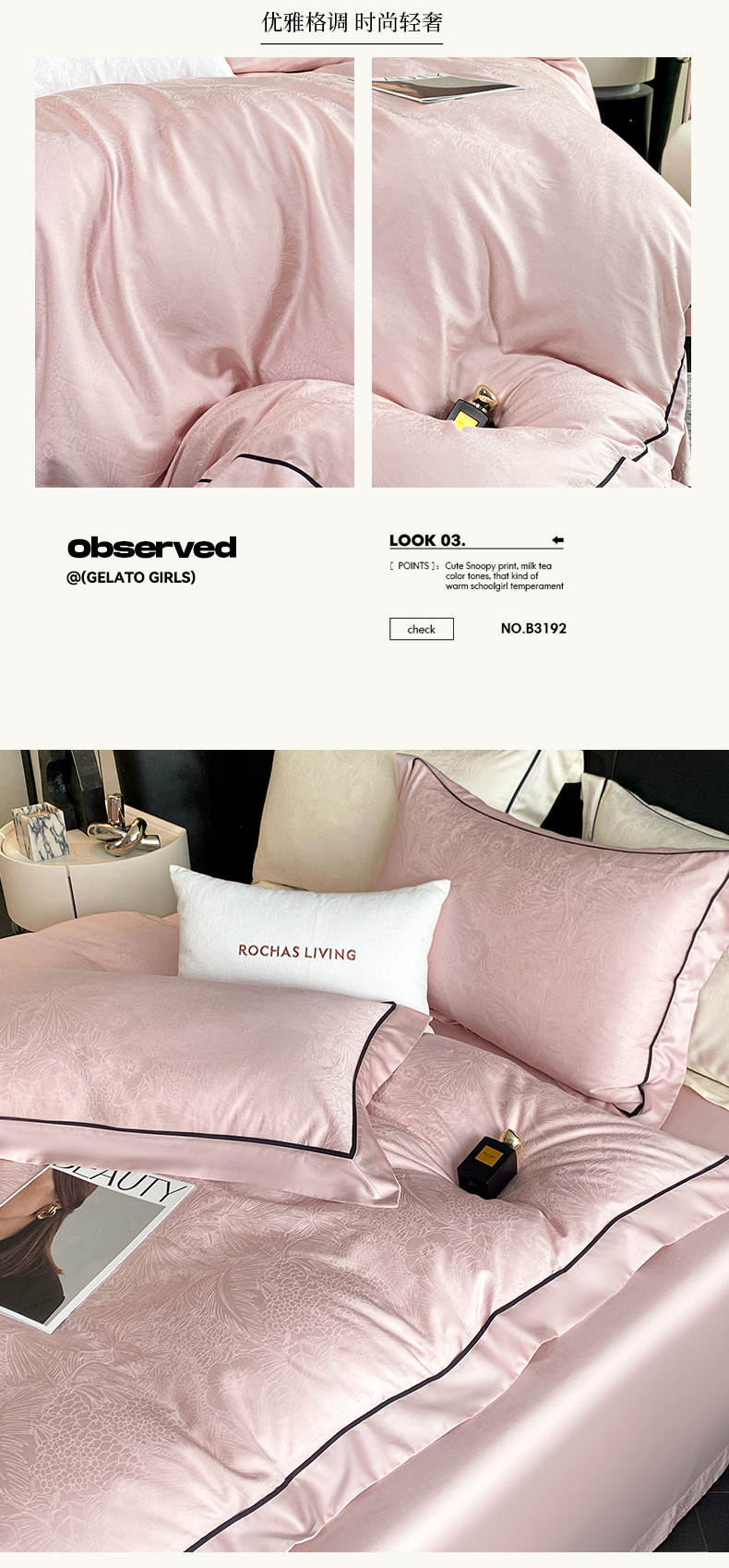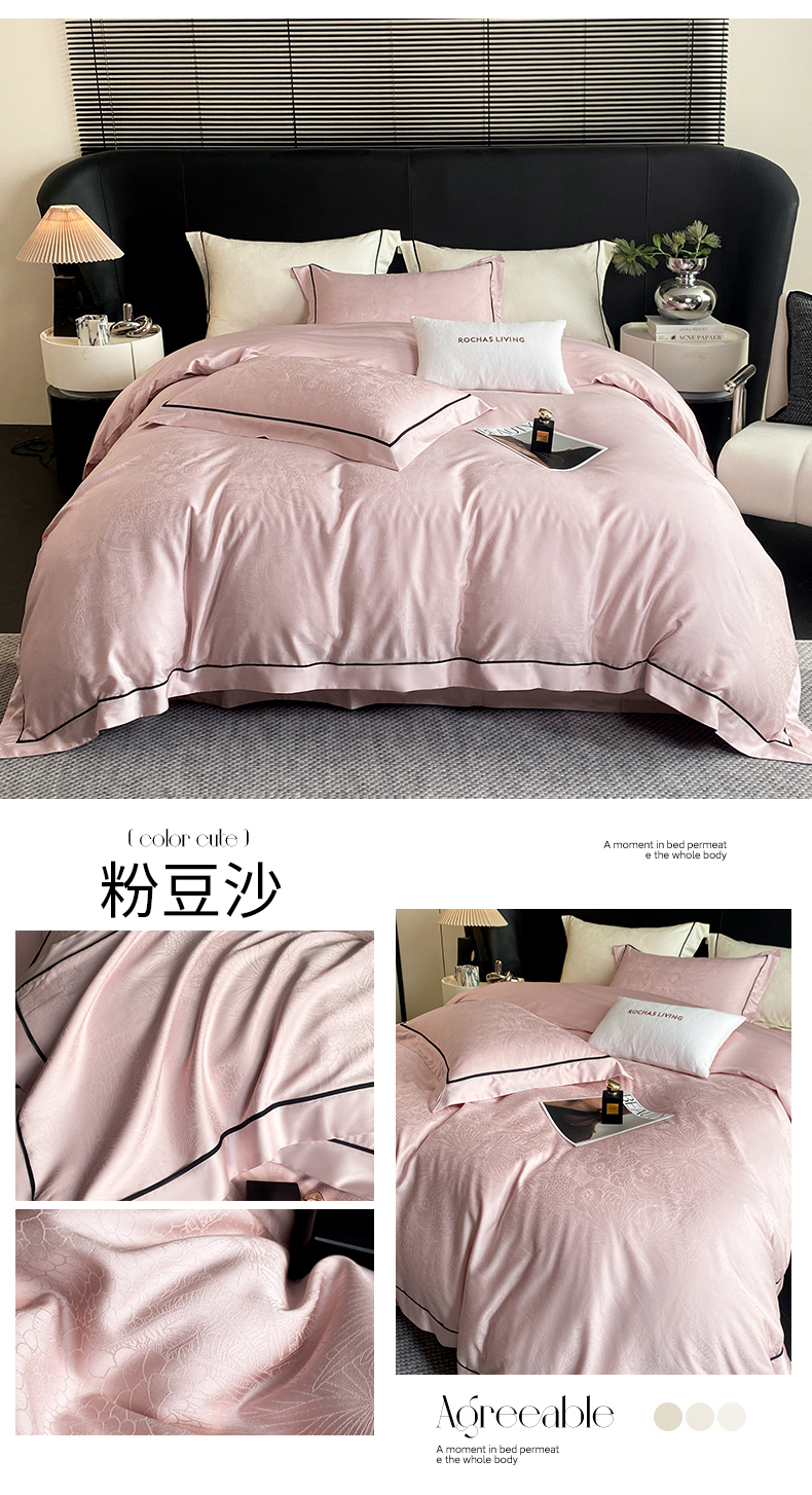 (总)魅都 2025新款100s长绒棉简约织带轻奢风四件套-罗伊,爱马橙,亮粉,浅灰,香槟金,香芋紫