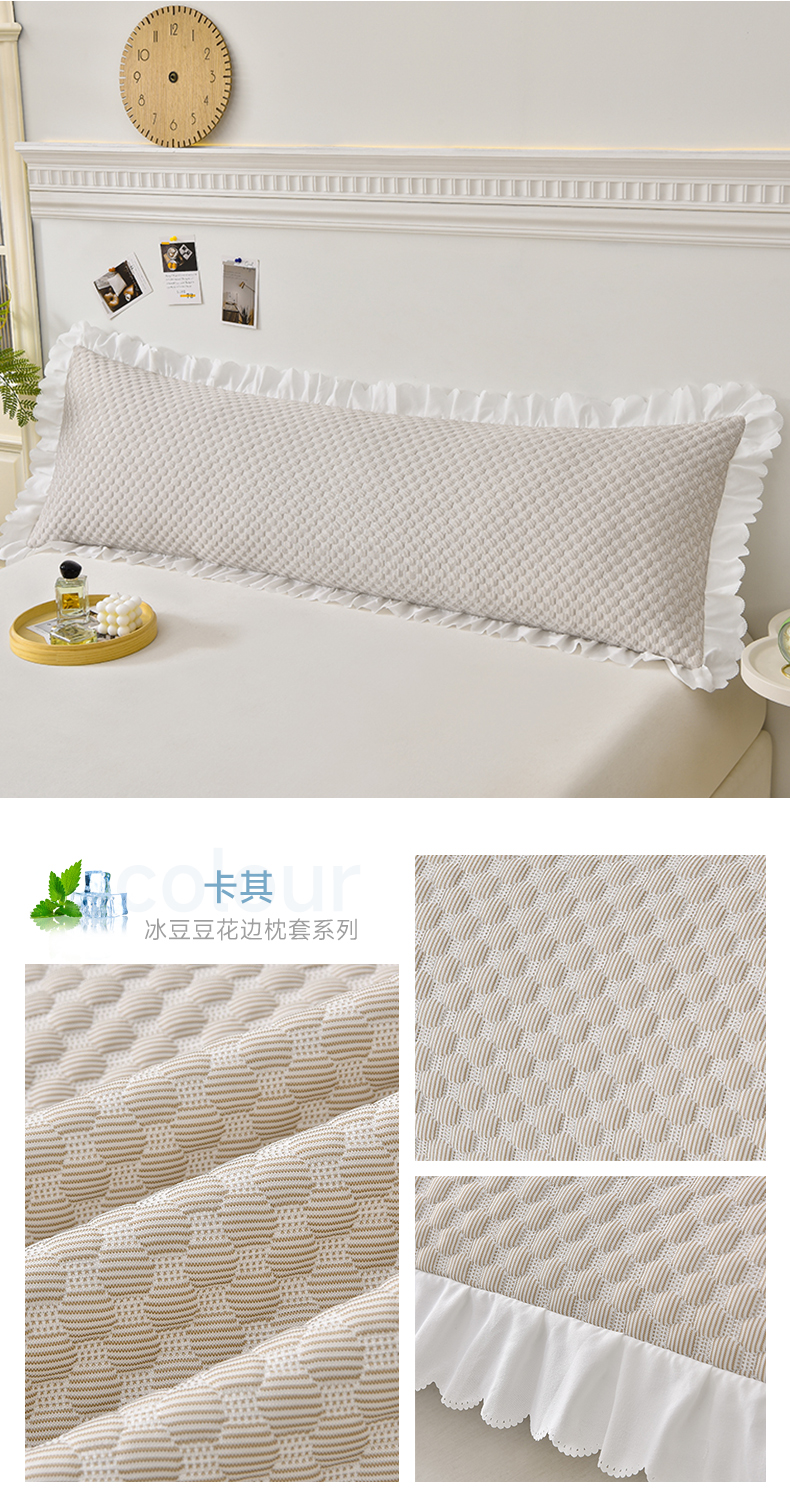 商品名称:艾兜坊 2024新款针织冰豆豆花边枕套 卡其