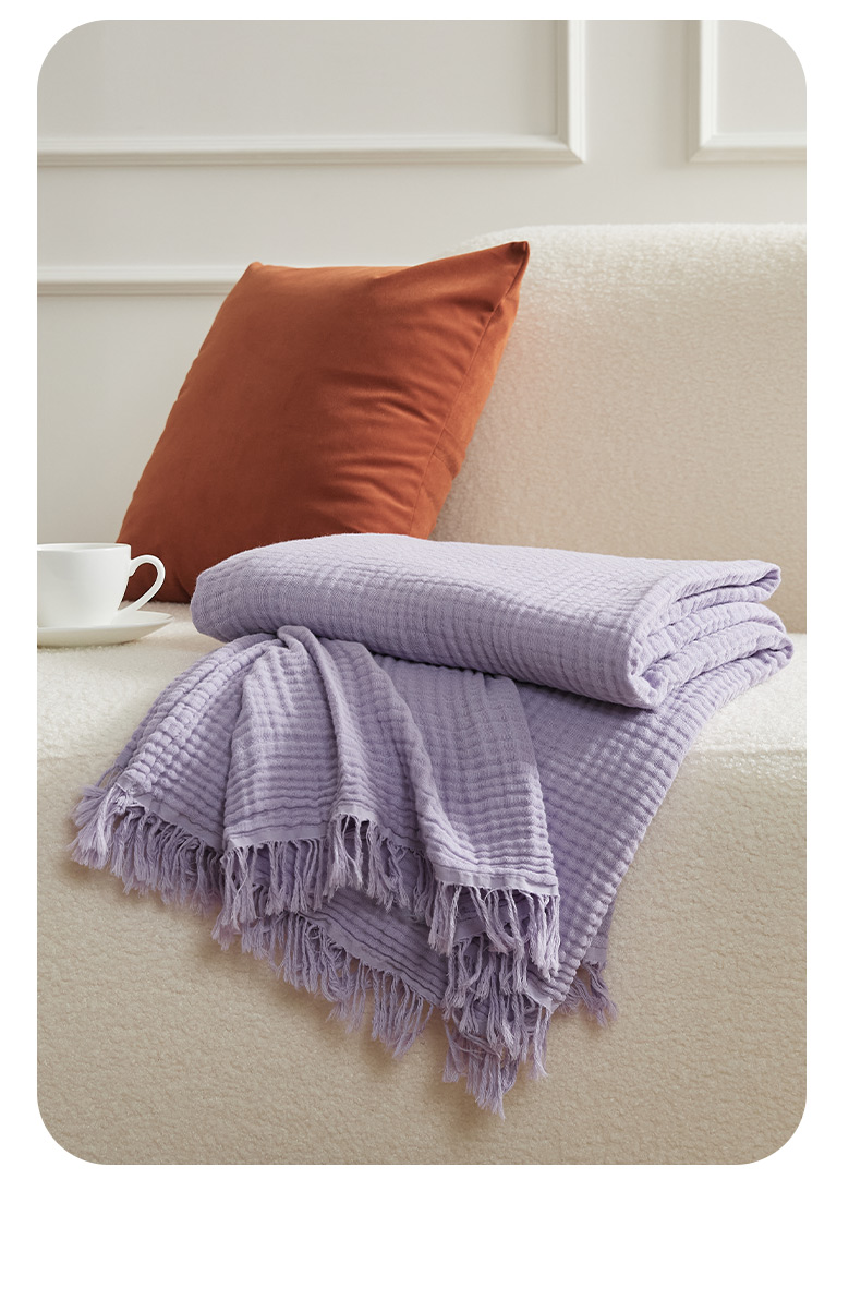 EH家居 2024新款纯棉四层皱皱纱毯盖毯休闲毯 包边款-香芋紫