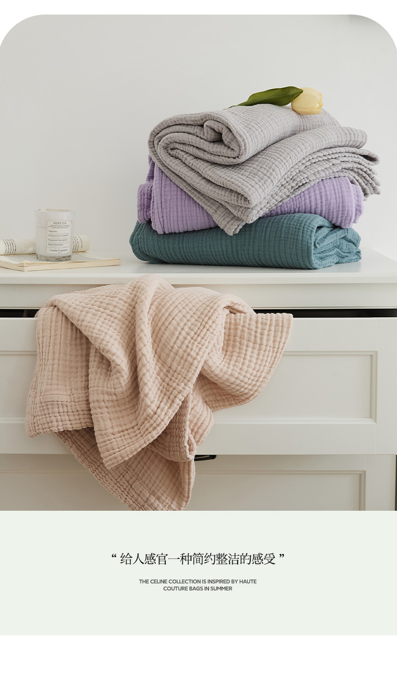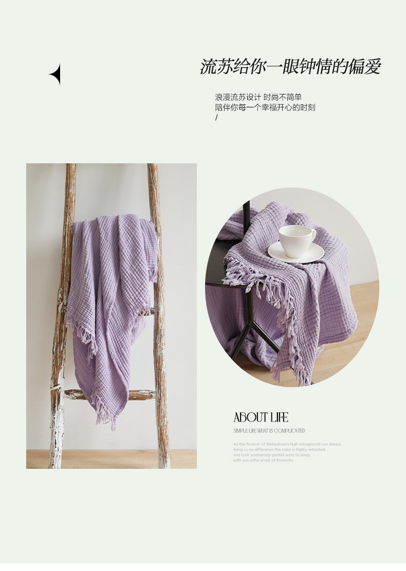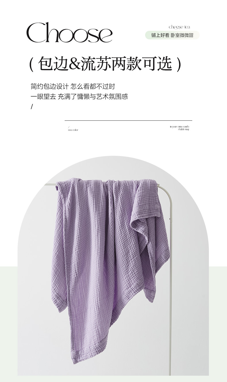 商品名称:EH家居 2024新款纯棉四层皱皱纱毯盖毯休闲毯 包边款-香芋紫