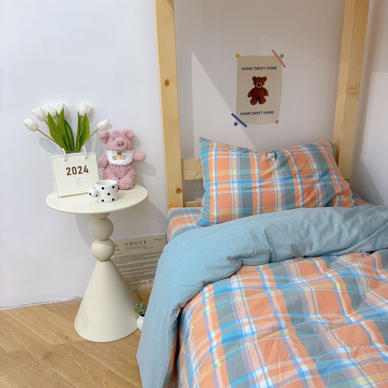 商品名称:2024新款学生三件套多功能被套 水洗棉床盖 砂洗床盖 床盖三件套 桔大格