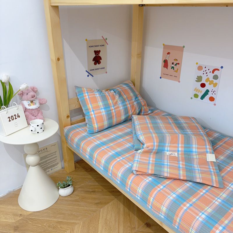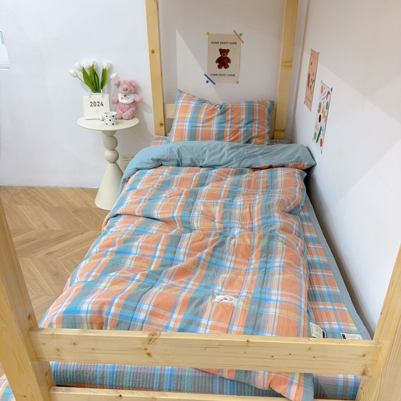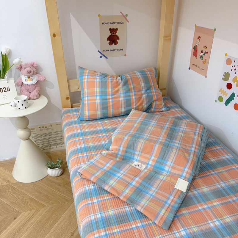 2024新款学生三件套多功能被套 水洗棉床盖 砂洗床盖 床盖三件套 桔大格