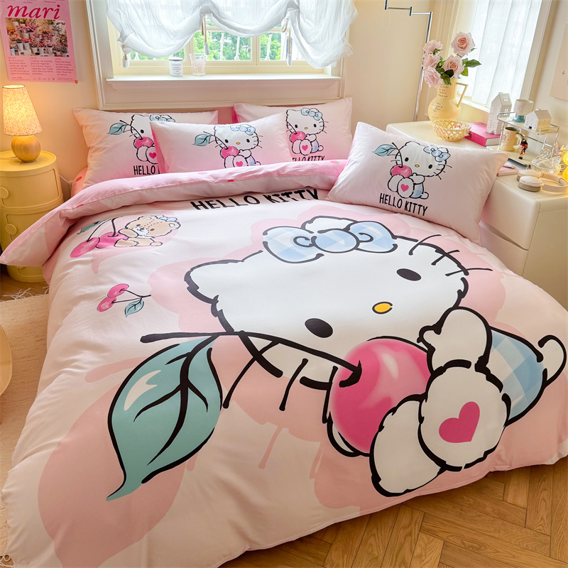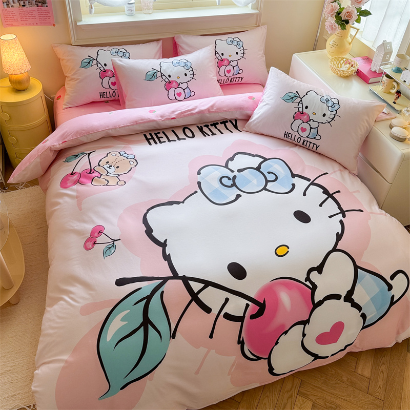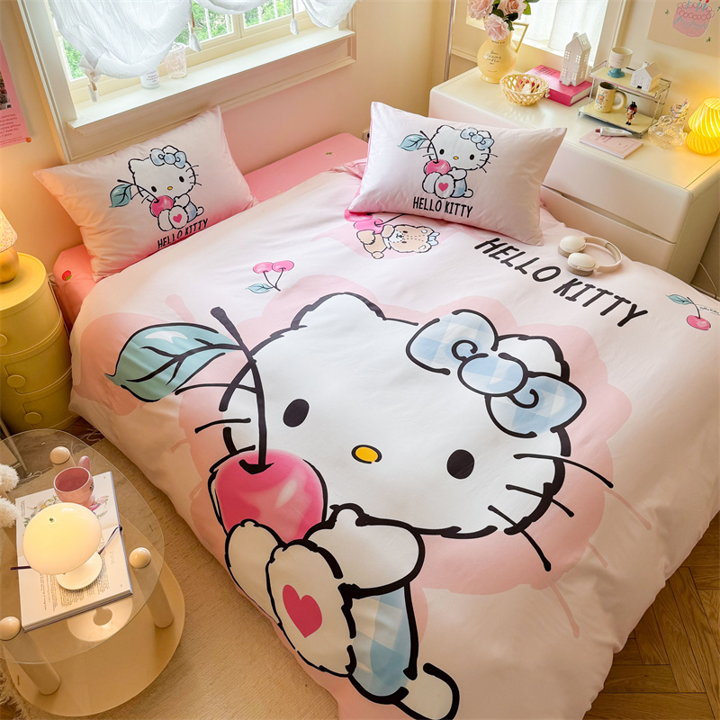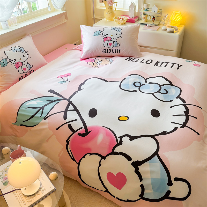 当前位置: 91家纺网 > 商品网购 > 床品套件 > 四件套 > 全棉普通四件套 > 名兮家居 2024新款三丽鸥全棉13372大版数码印花四件套【含防伪标】 樱桃kt