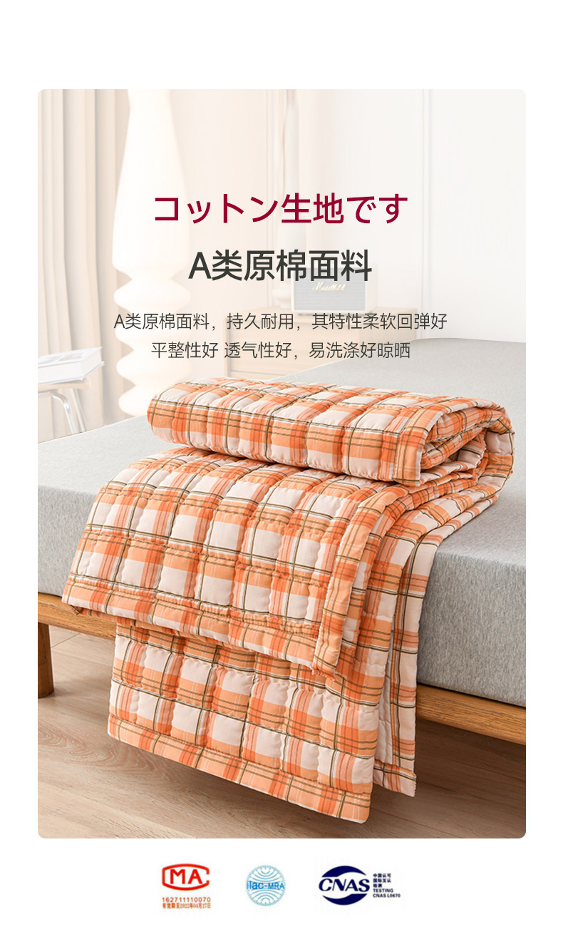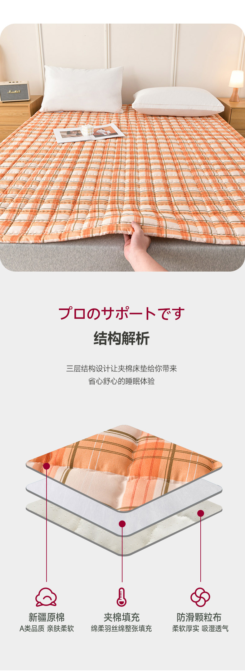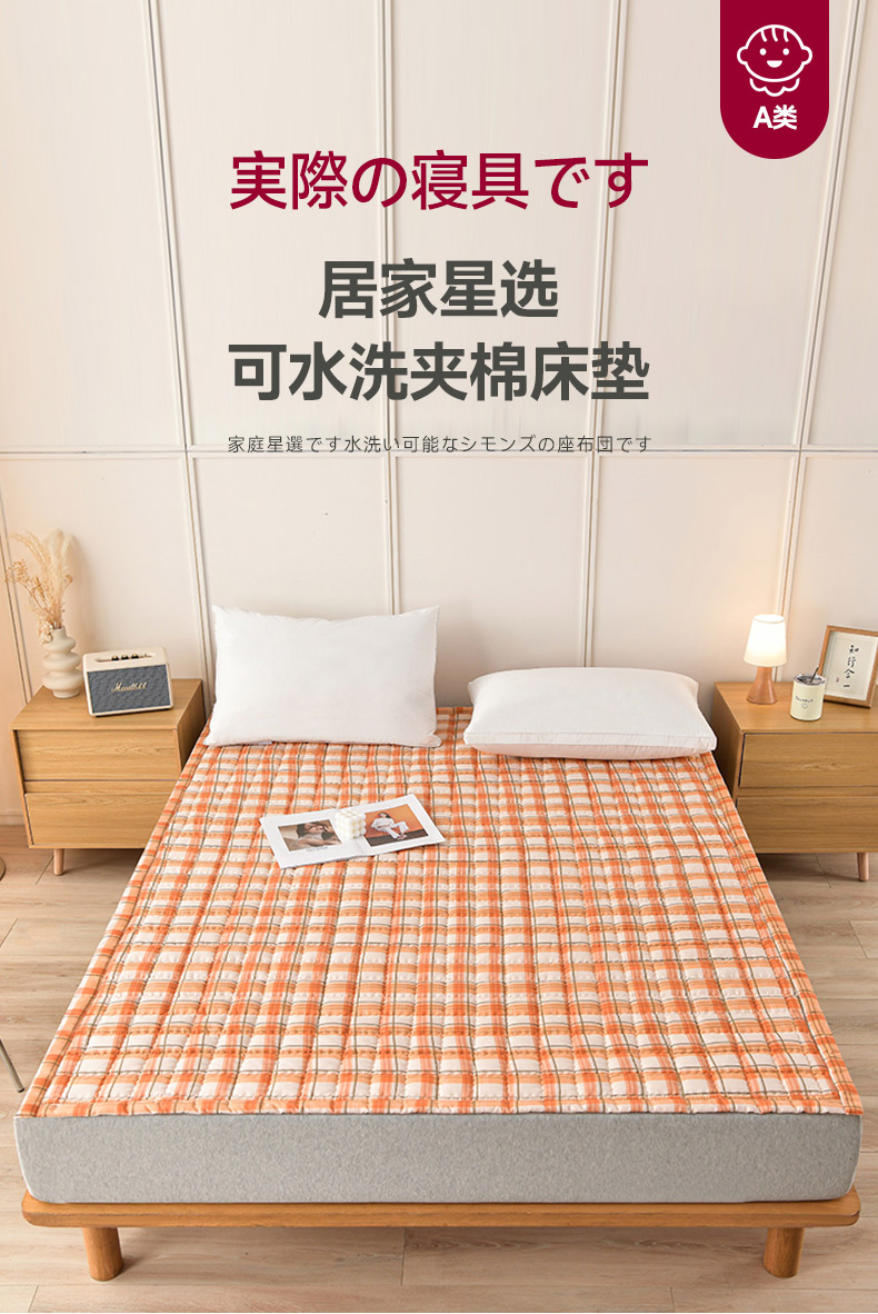 当前位置: 91家纺网 > 商品网购 > 床垫/床褥 > 普通床垫 > 艾兜坊 2024新款可水洗原棉夹棉床垫 橙黄格