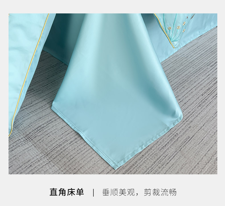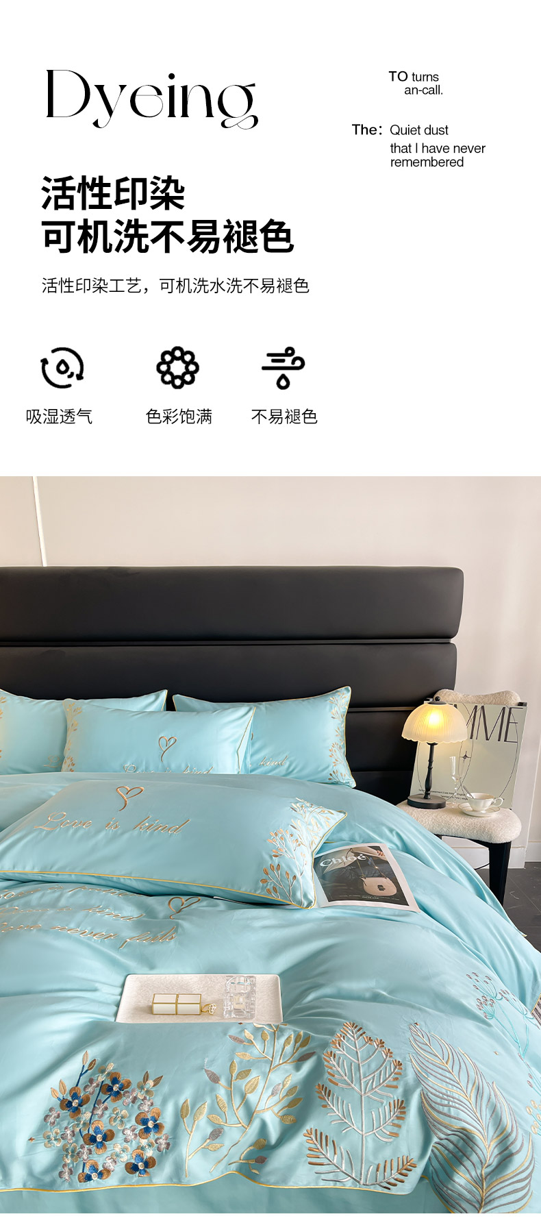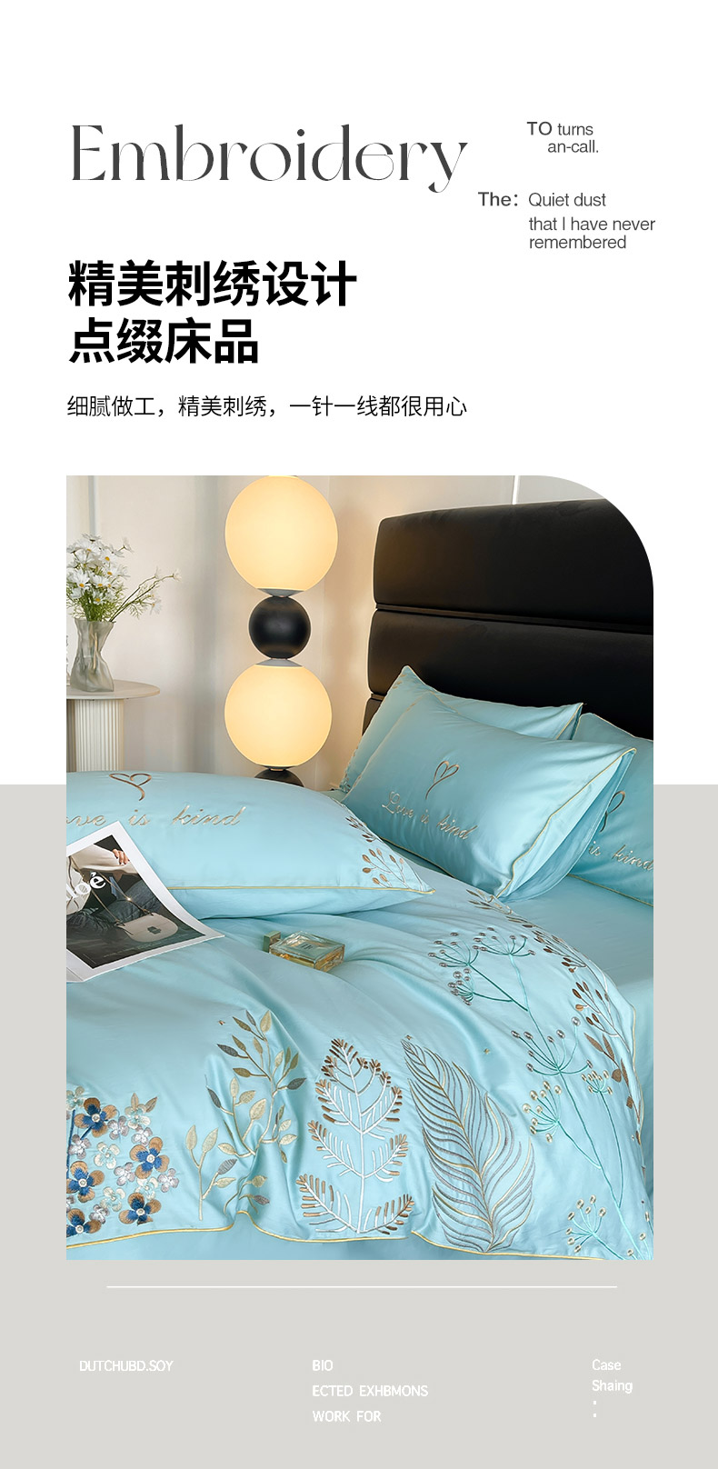 商品名称: 2024新款100支长绒棉四件套全棉纯棉重工刺绣天丝棉床单床笠款丝滑裸睡床上用品 菲洛拉-水蓝色
