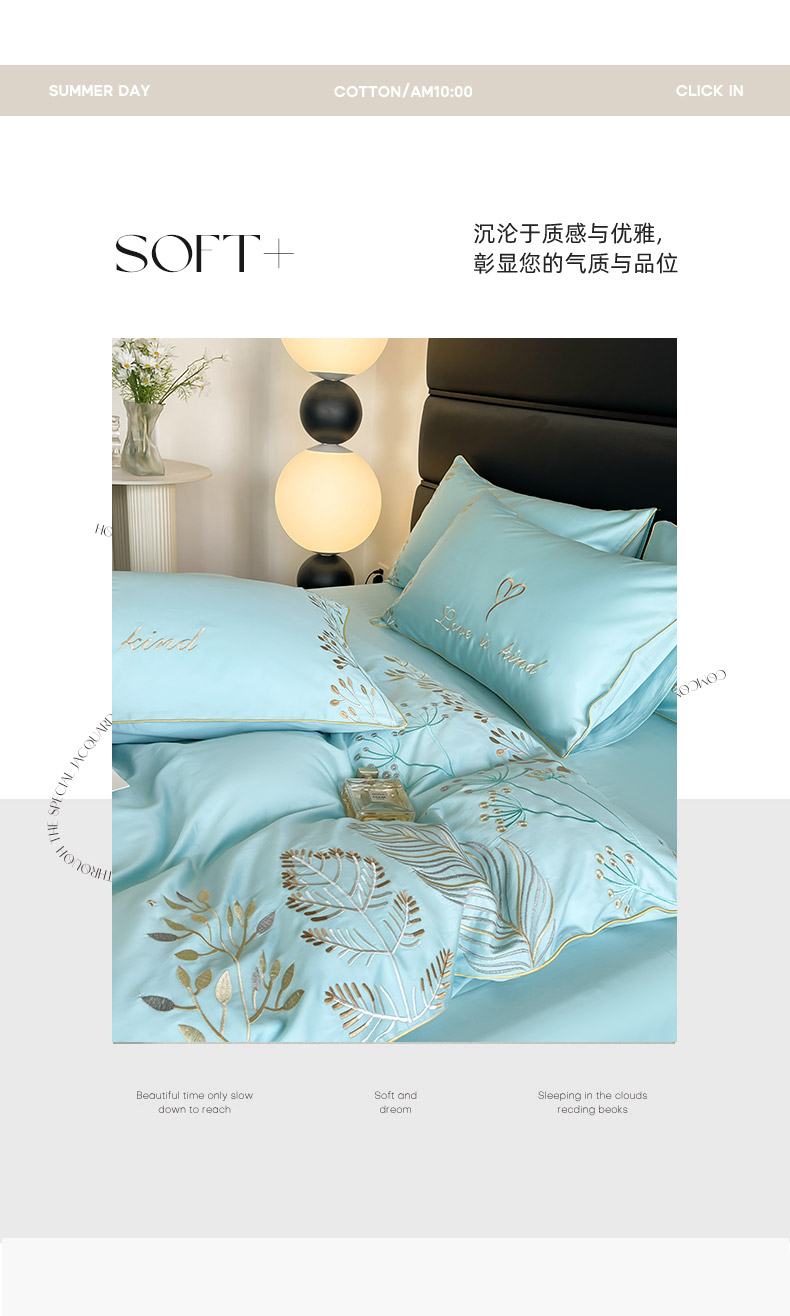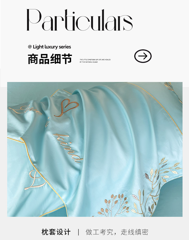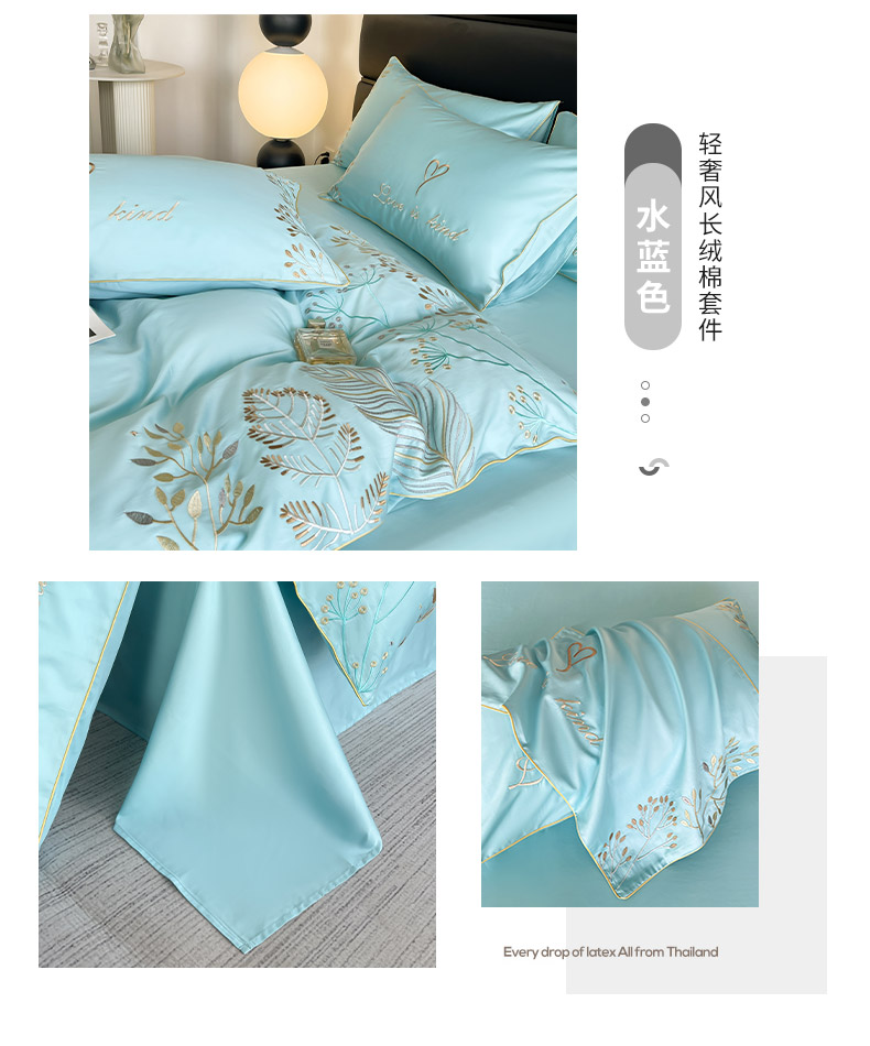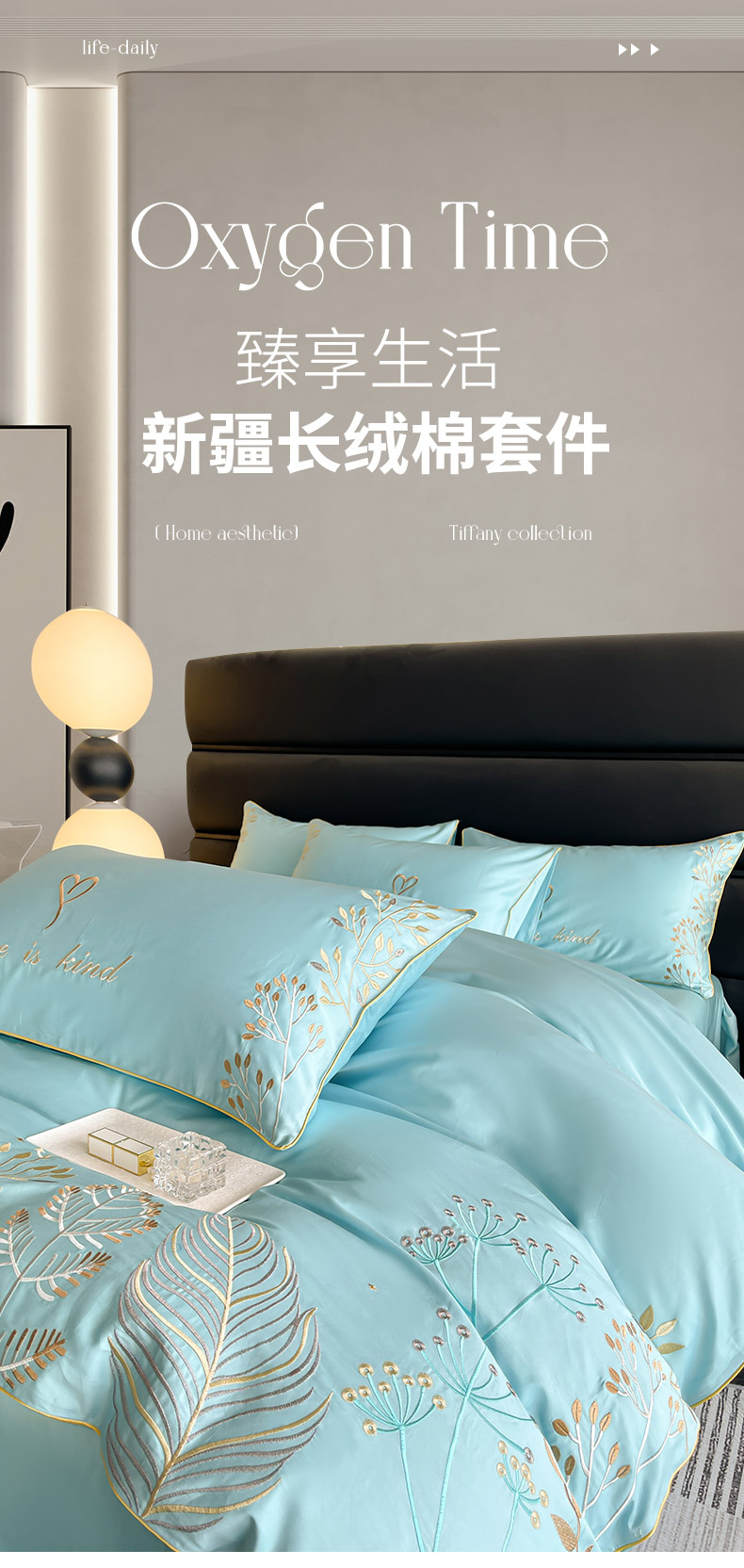 商品名称: 2024新款100支长绒棉四件套全棉纯棉重工刺绣天丝棉床单床笠款丝滑裸睡床上用品 菲洛拉-水蓝色