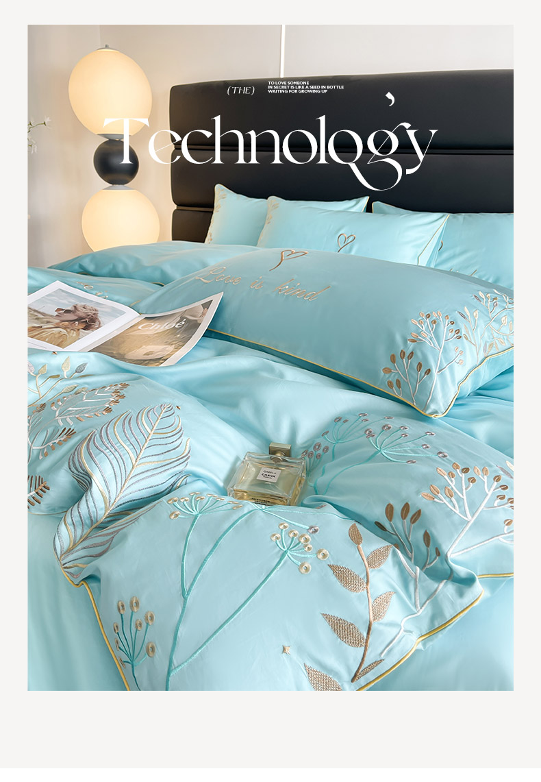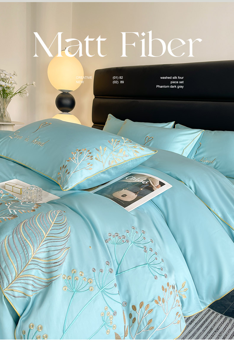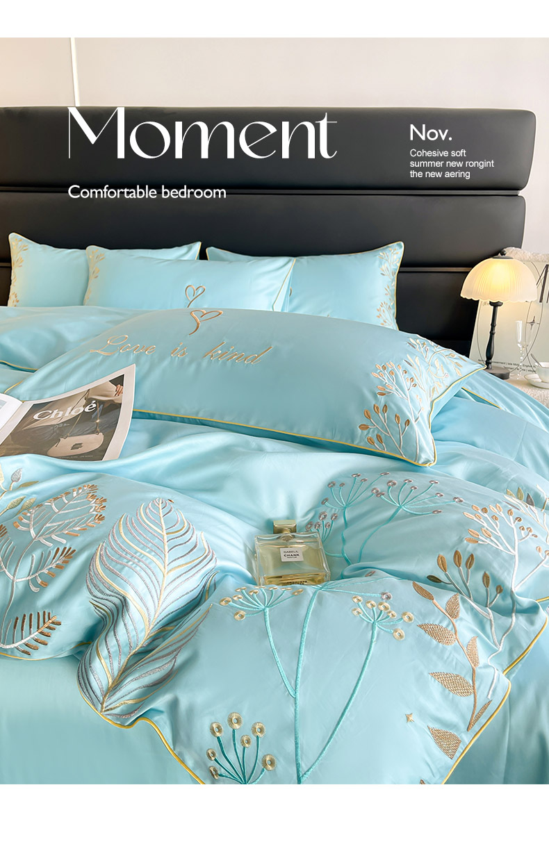 2024新款100支长绒棉四件套全棉纯棉重工刺绣天丝棉床单床笠款丝滑裸睡床上用品 菲洛拉-水蓝色