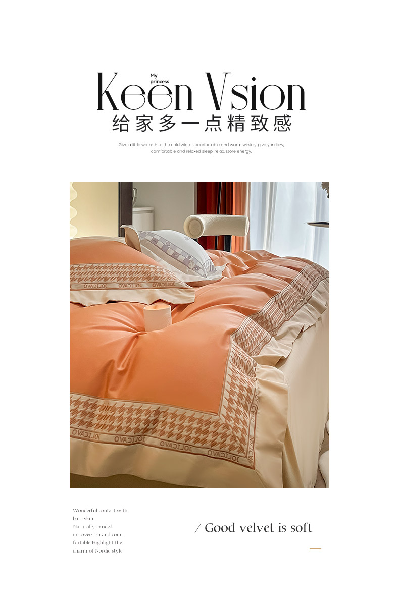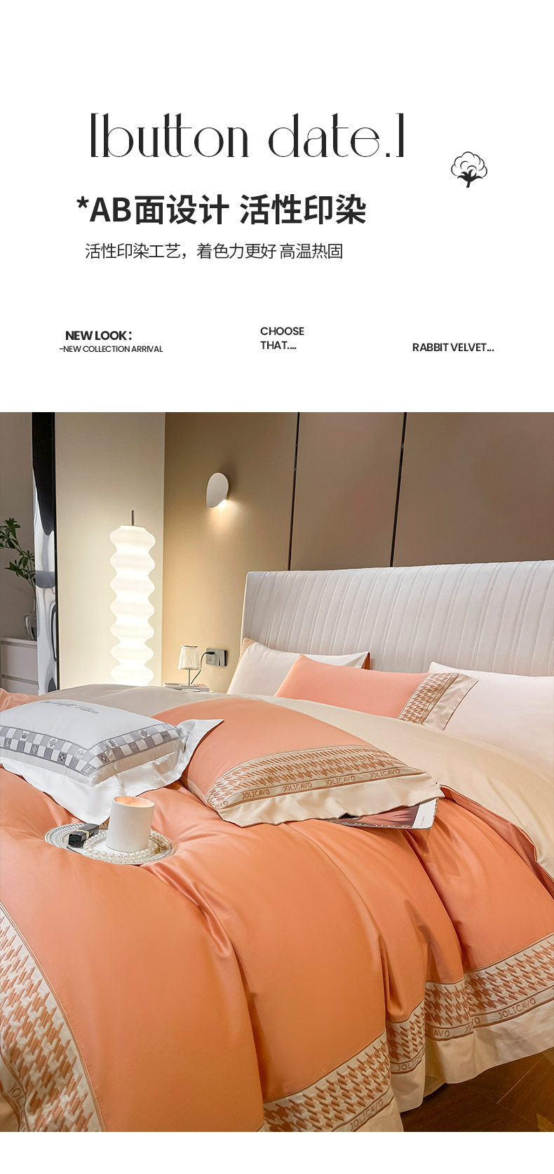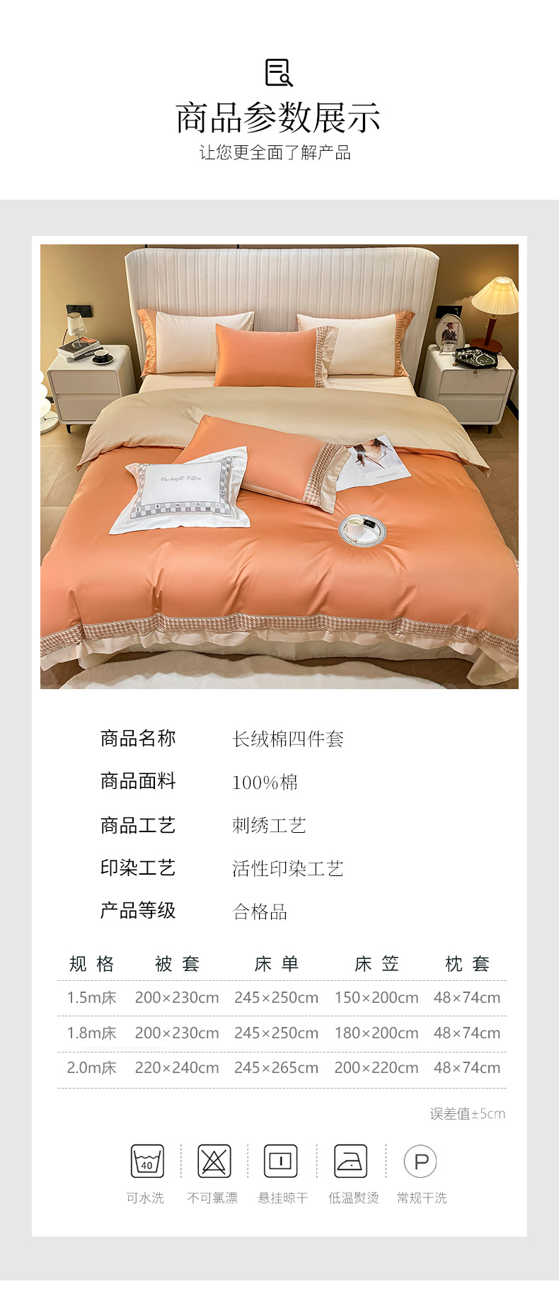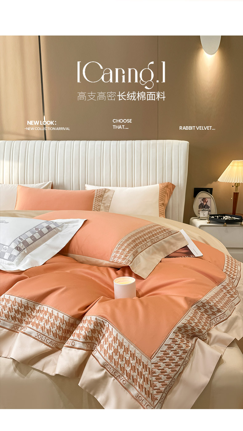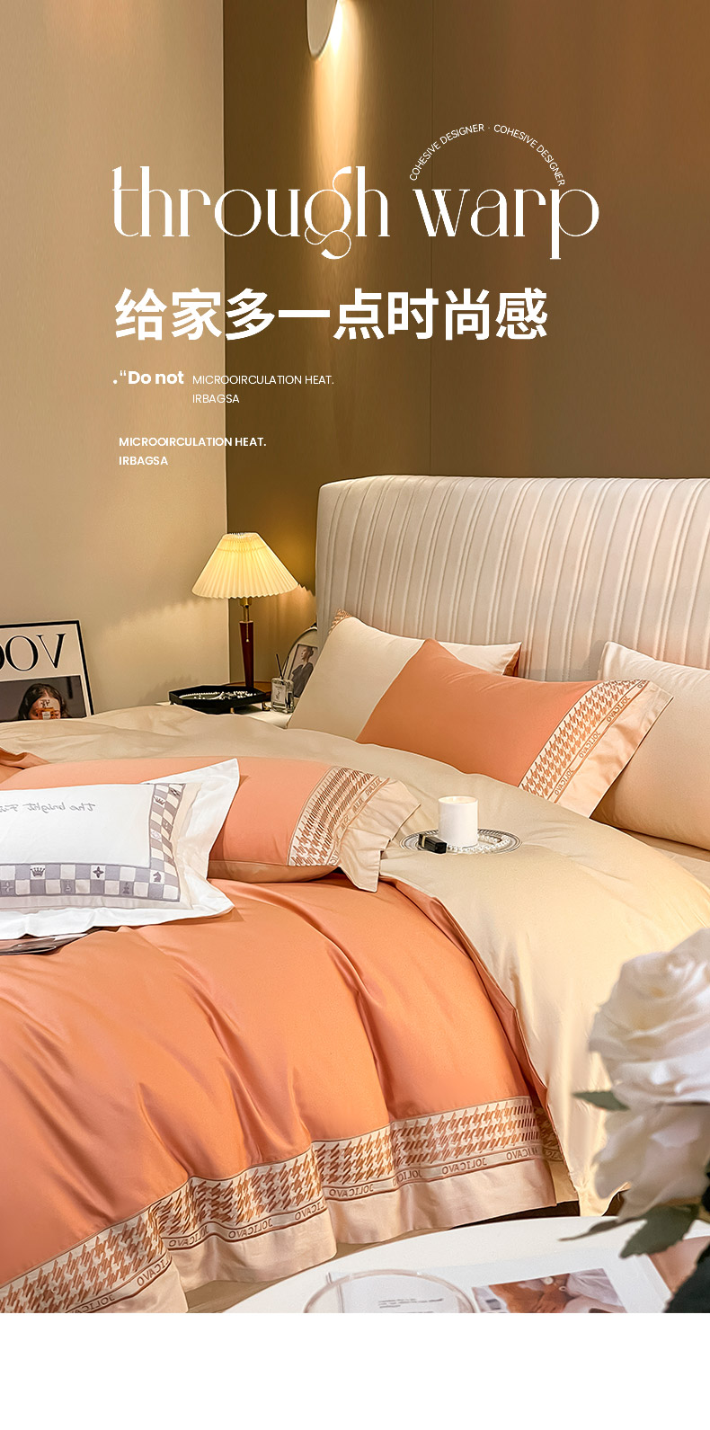当前位置: 91家纺网 > 商品网购 > 床品套件 > 四件套 > 全棉普通四件套 > 60支贡缎长绒棉四件套2023新款全棉纯棉千鸟格刺绣床单被套新疆棉100支床上用品床笠款 千鸟格-中古橙