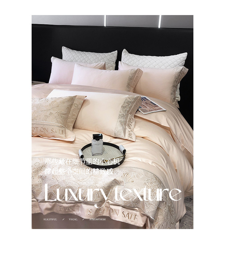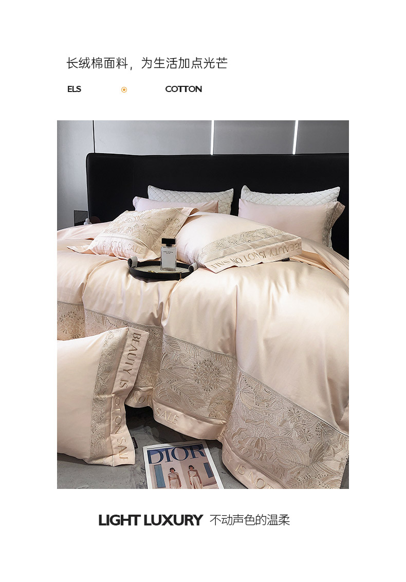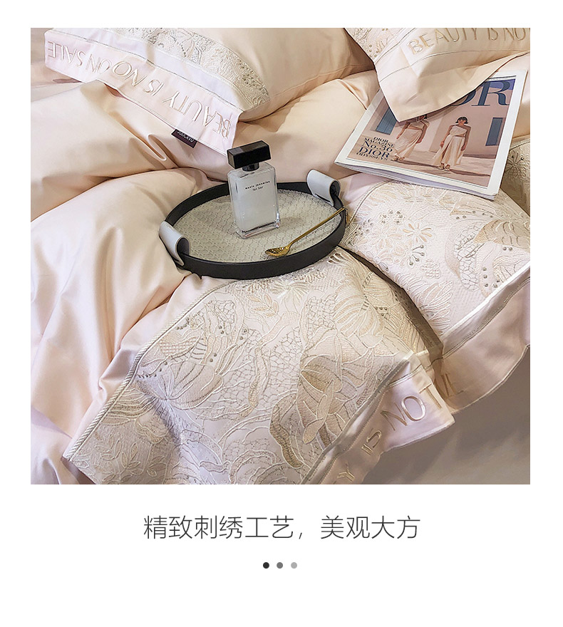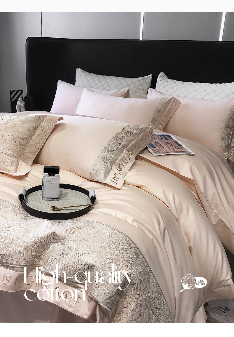商品名称: 【会员减价20】100支长绒棉四件套全棉纯棉纯色刺绣澳棉简约新疆棉贡缎丝床上用品床笠款 清颜-樱花粉