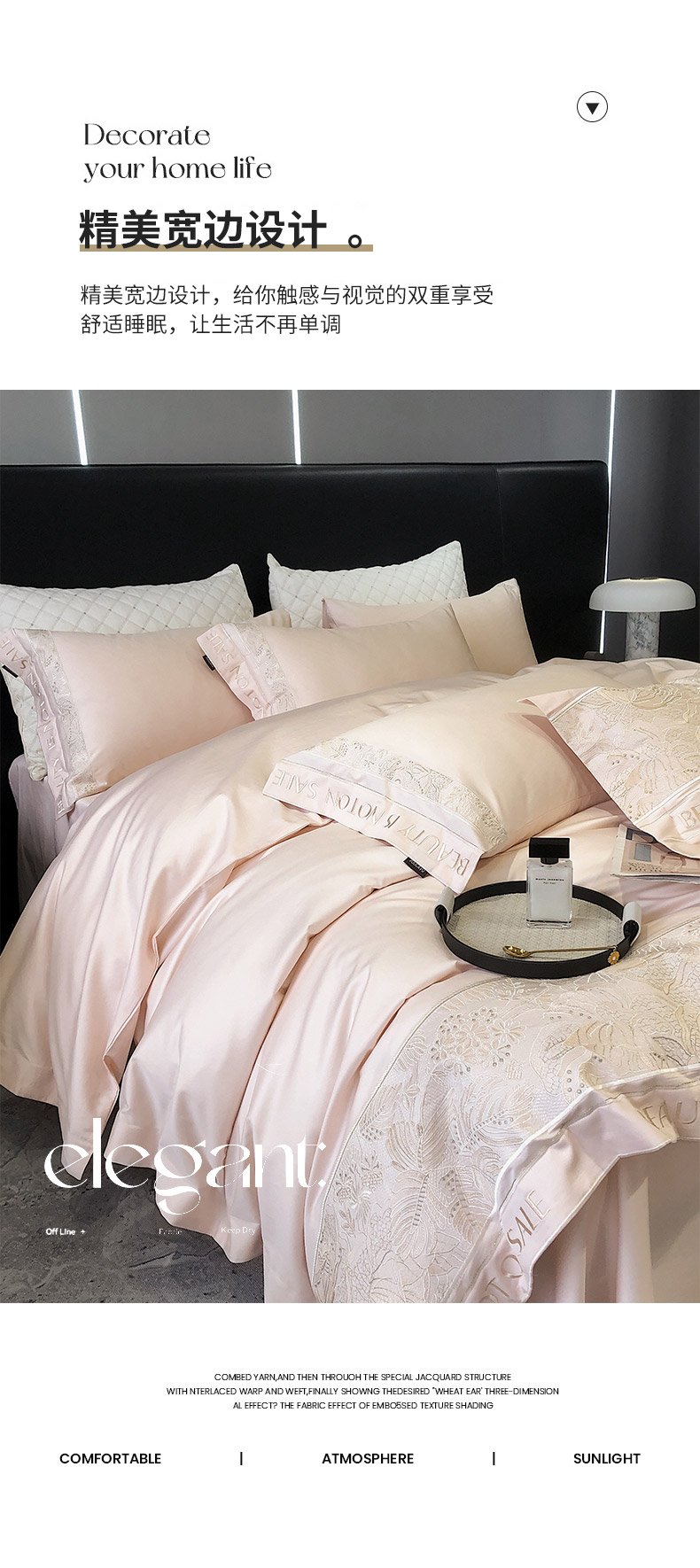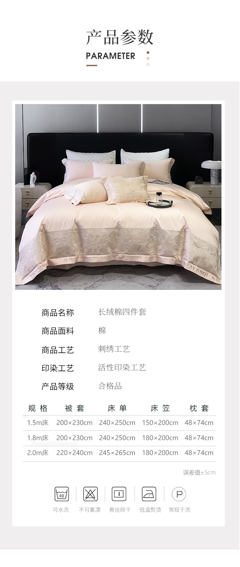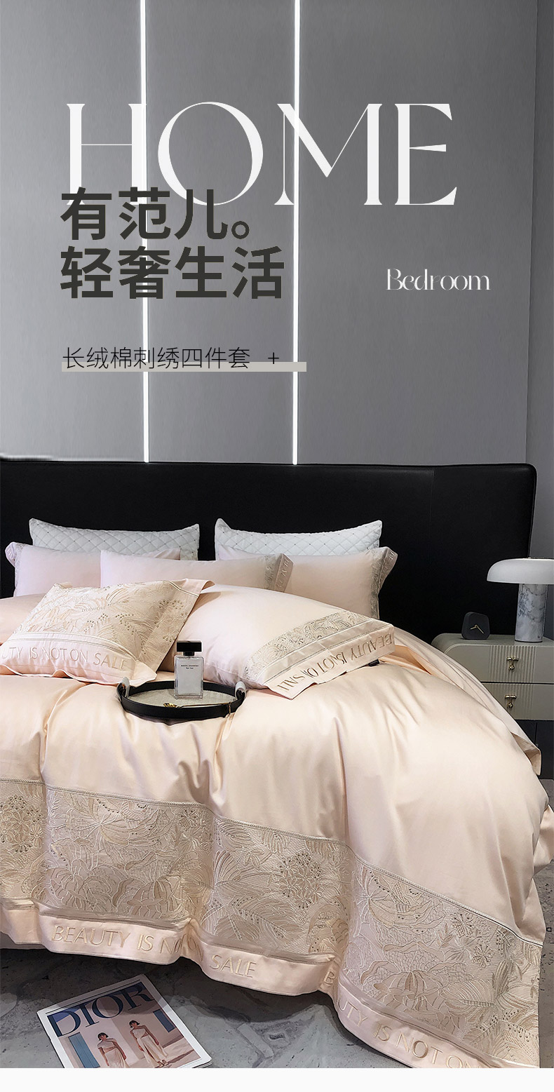商品名称: 【会员减价20】100支长绒棉四件套全棉纯棉纯色刺绣澳棉简约新疆棉贡缎丝床上用品床笠款 清颜-樱花粉