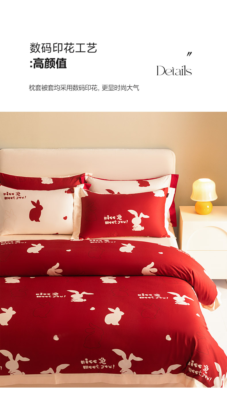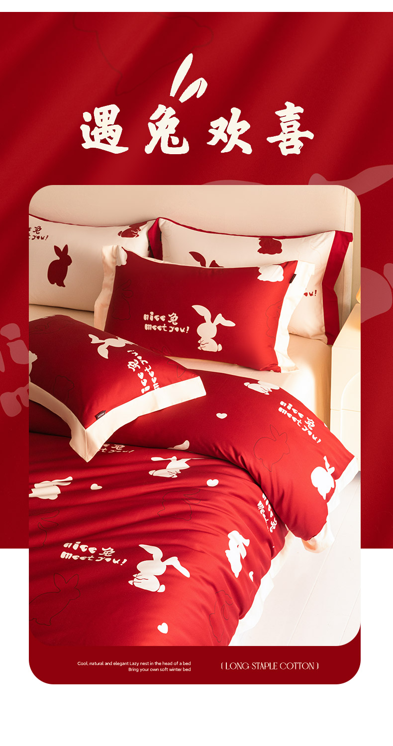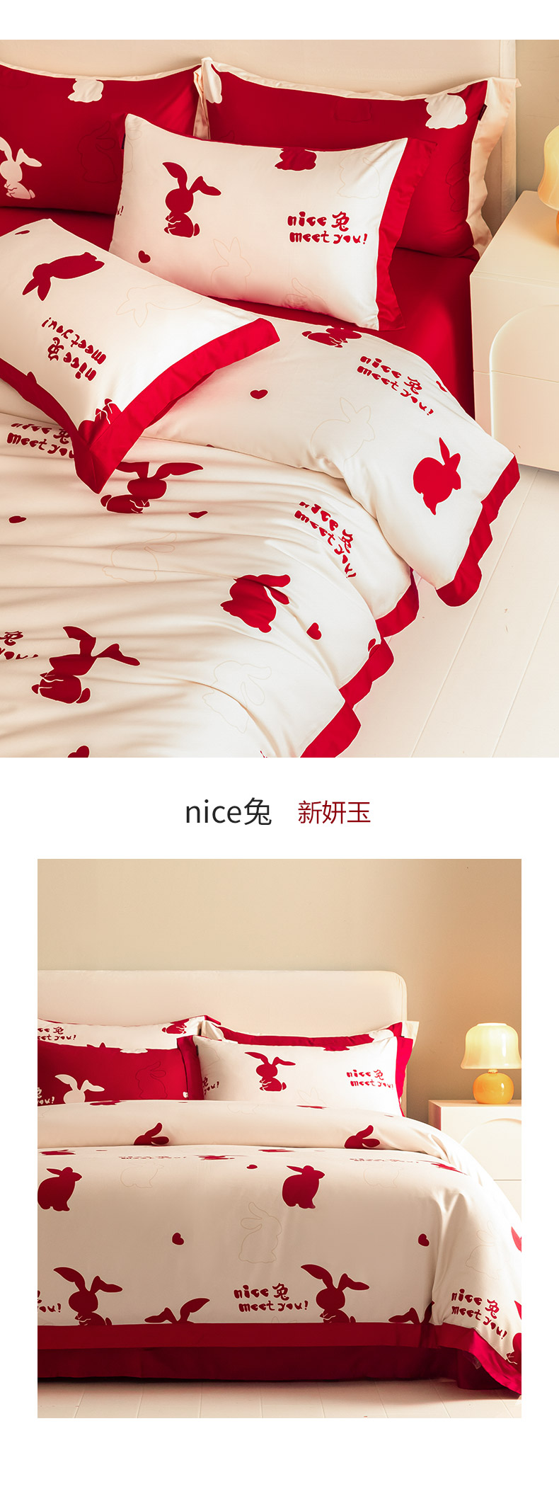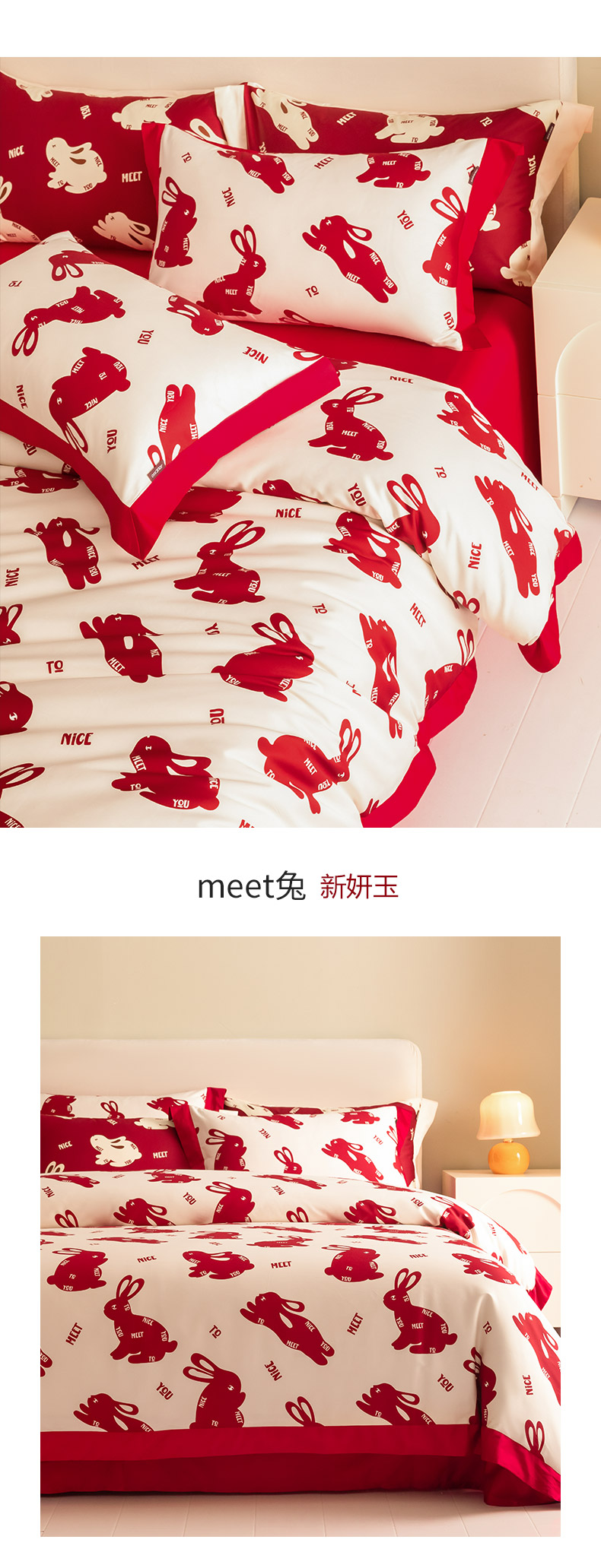 当前位置: 91家纺网 > 商品网购 > 床品套件 > 四件套 > 全棉普通四件套 > 【婚嫁新品】100支长绒棉四件套全棉纯棉北欧风印花床上用品轻奢风床笠款 nice兔 喜庆红