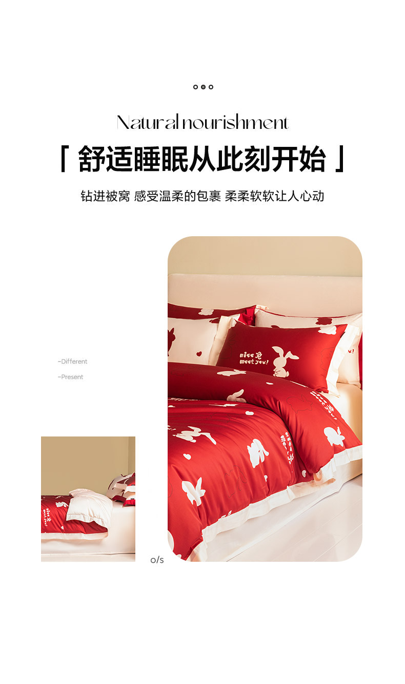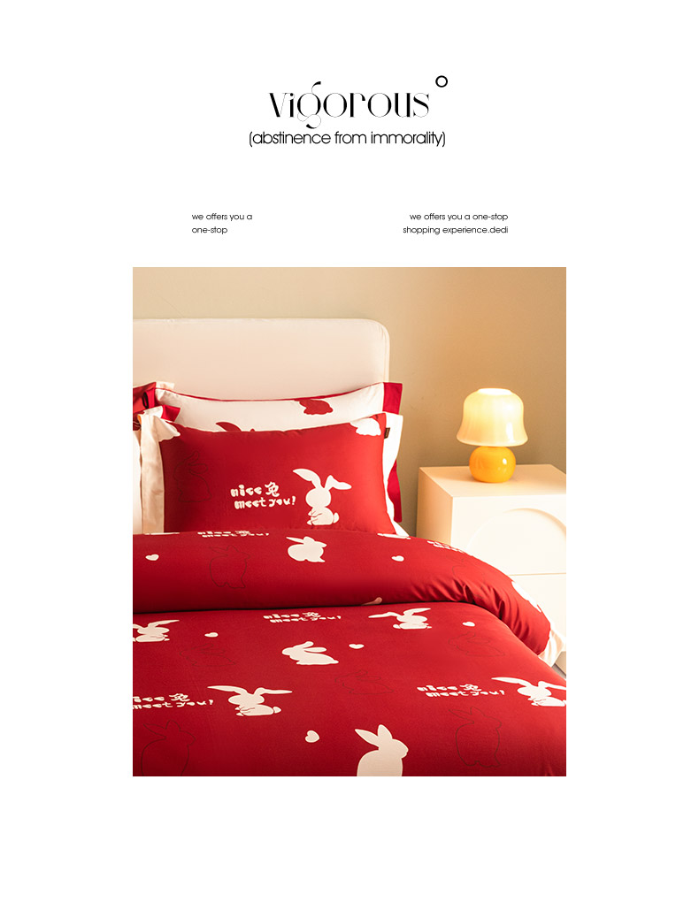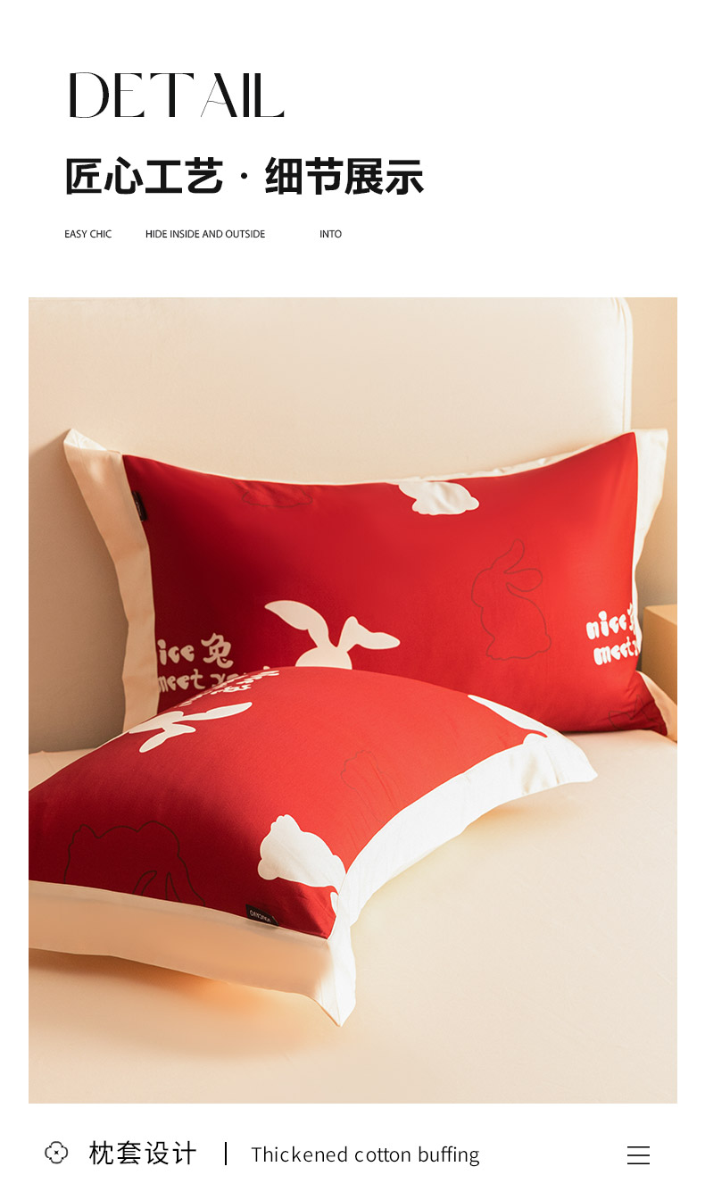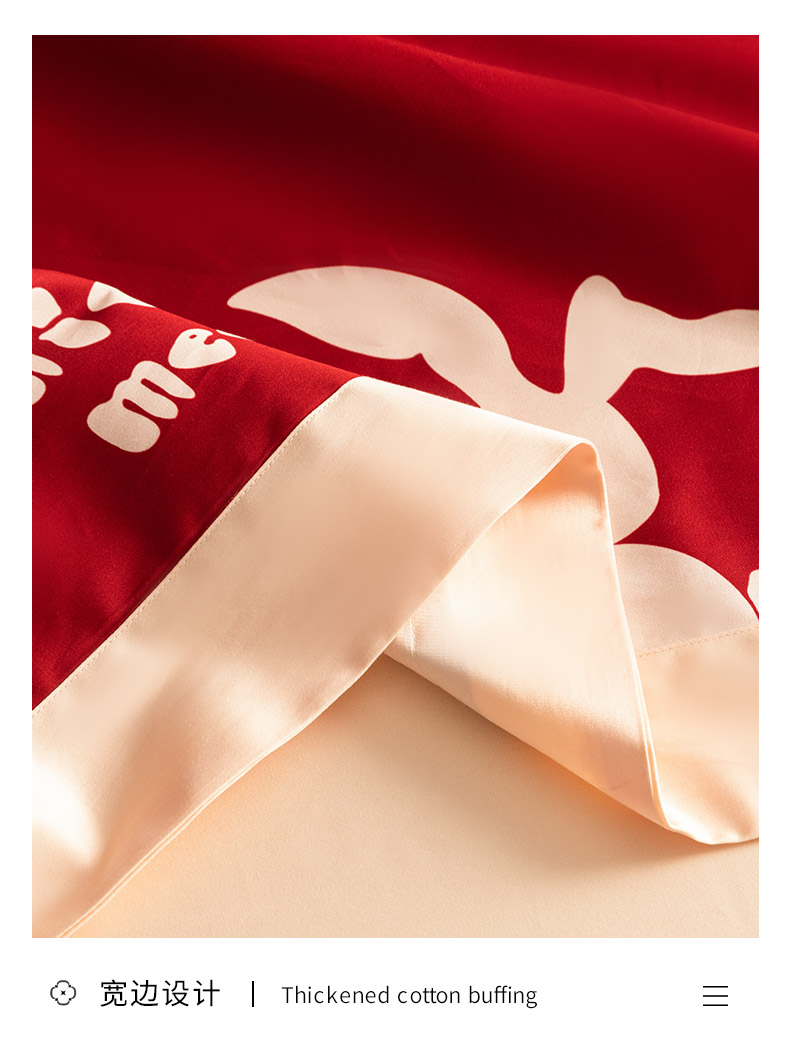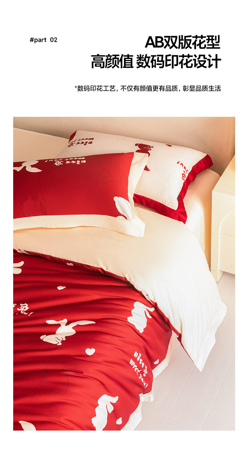 当前位置: 91家纺网 > 商品网购 > 床品套件 > 四件套 > 全棉普通四件套 > 【婚嫁新品】100支长绒棉四件套全棉纯棉北欧风印花床上用品轻奢风床笠款 nice兔 喜庆红