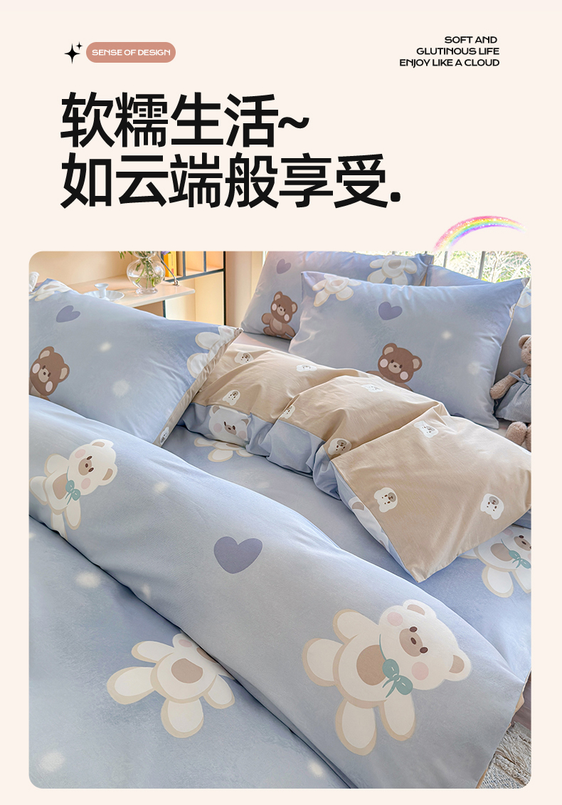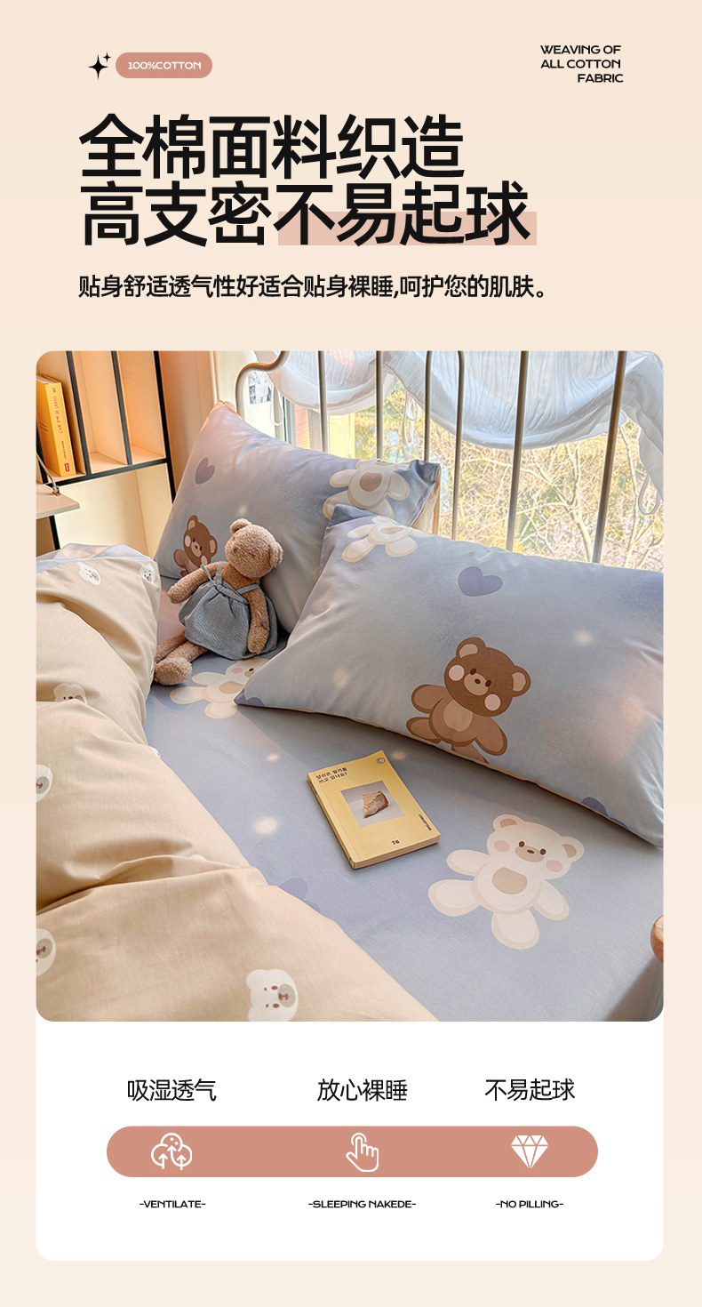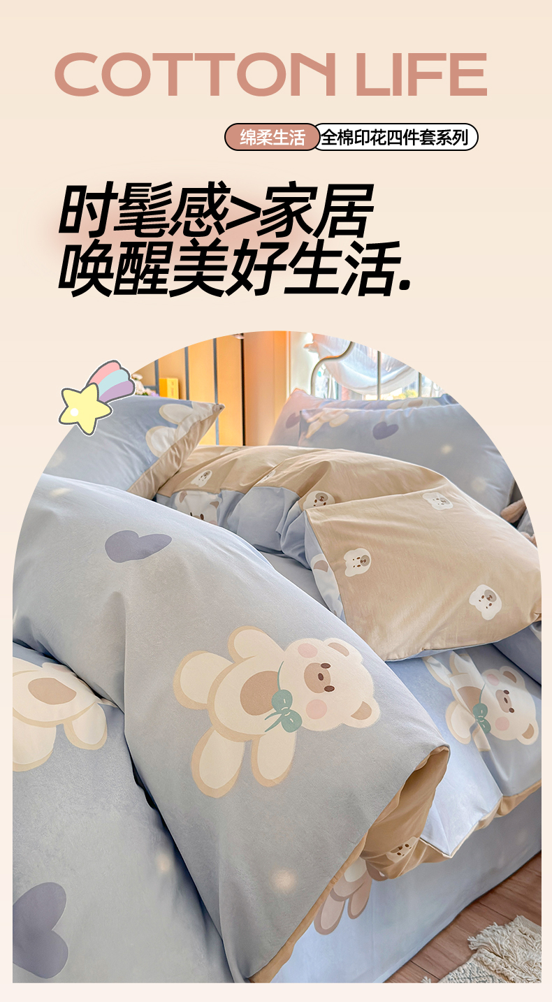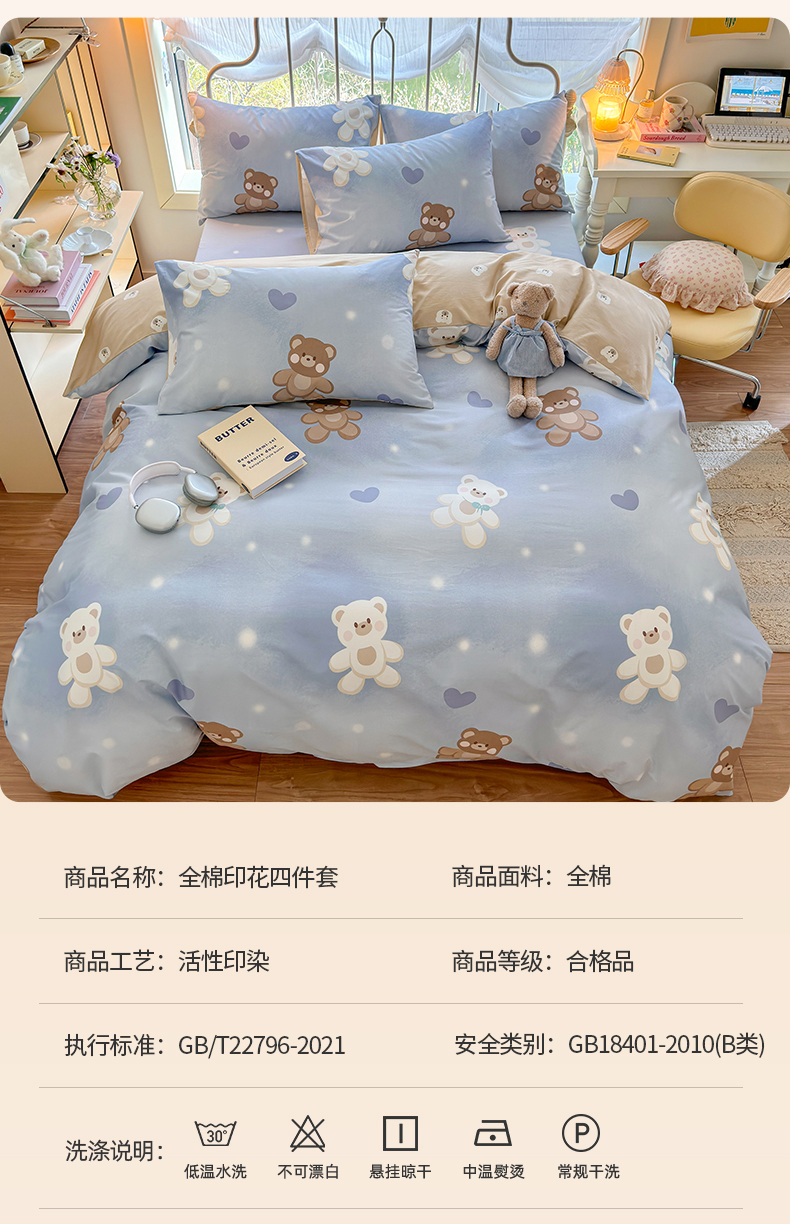 当前位置: 91家纺网 > 商品网购 > 床品套件 > 四件套 > 全棉普通四件套 > 名兮 2024新款全棉亲肤印花四件套 抱抱熊