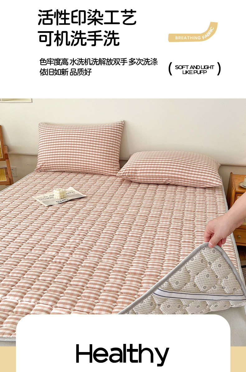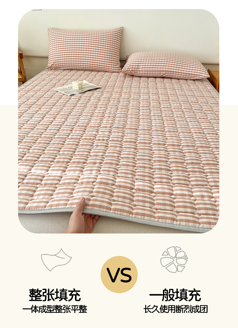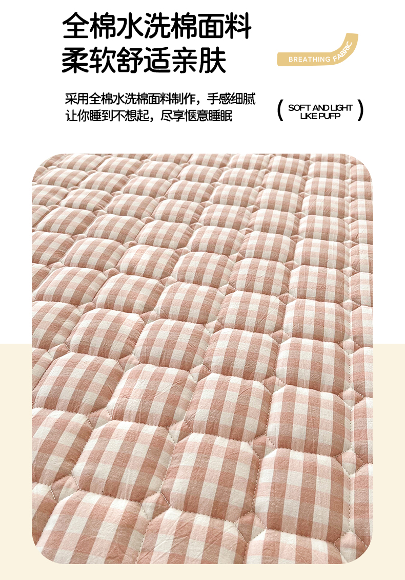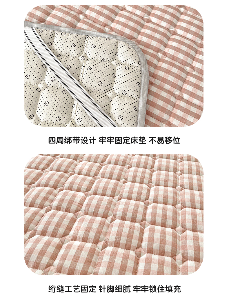 当前位置: 91家纺网 > 商品网购 > 床垫/床褥 > 普通床垫 > 卡伦家纺 2025新款全棉色织水洗棉夹棉床垫席梦思保护垫 粉小格