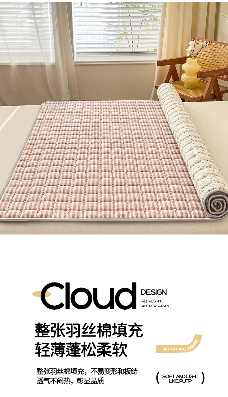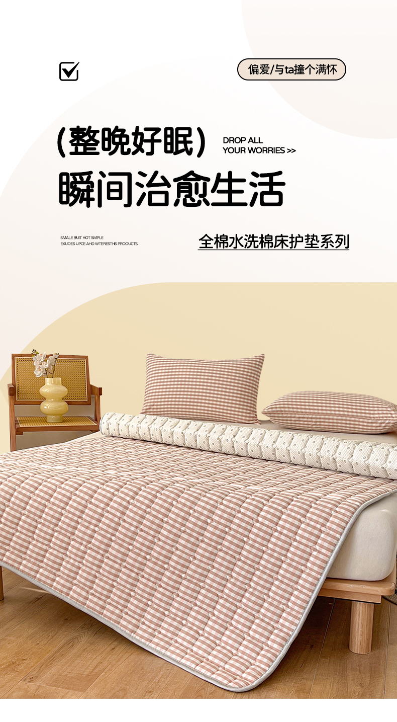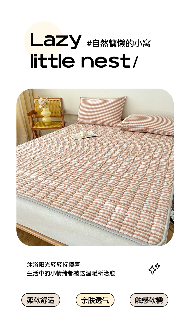 当前位置: 91家纺网 > 商品网购 > 床垫/床褥 > 普通床垫 > 卡伦家纺 2025新款全棉色织水洗棉夹棉床垫席梦思保护垫 粉小格