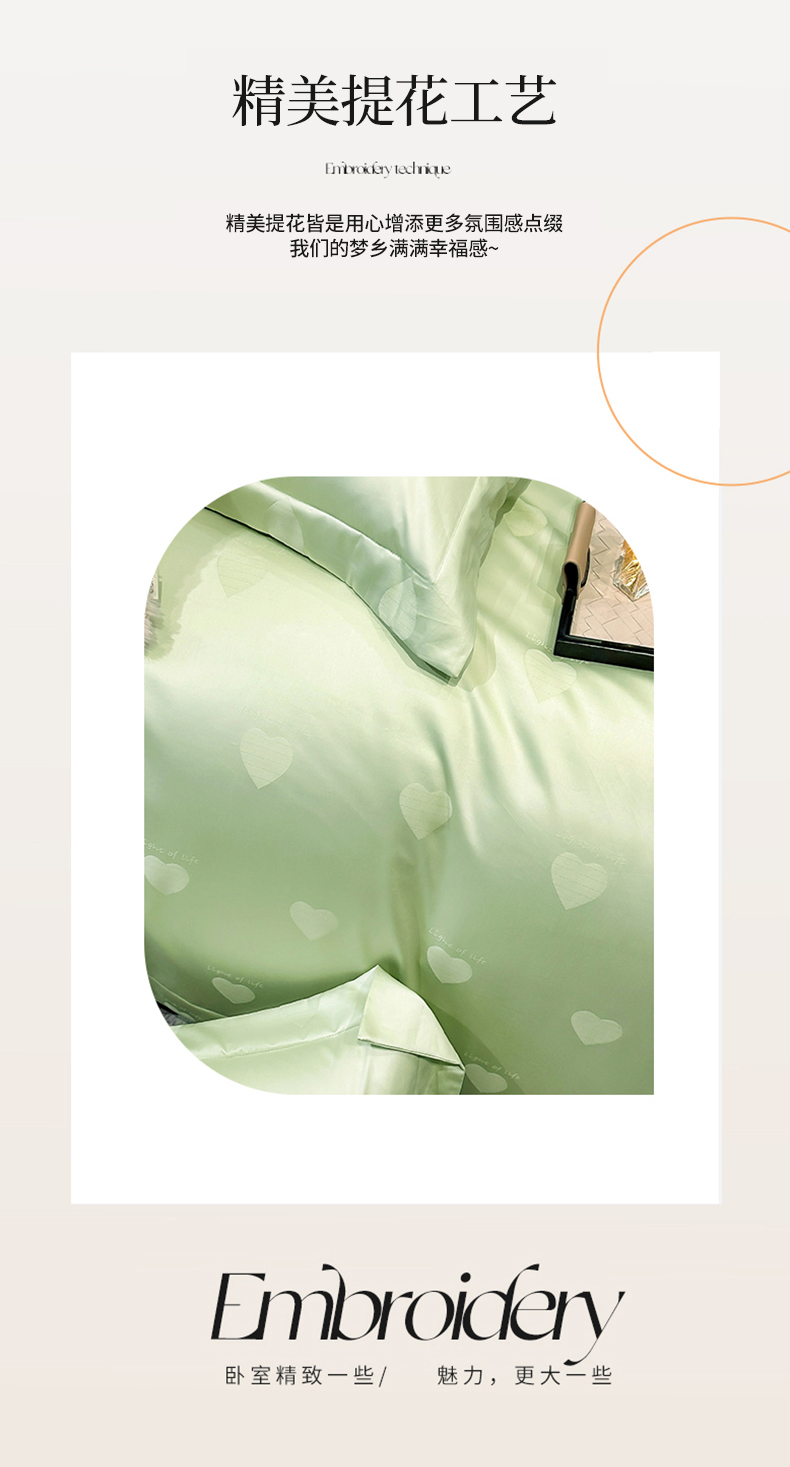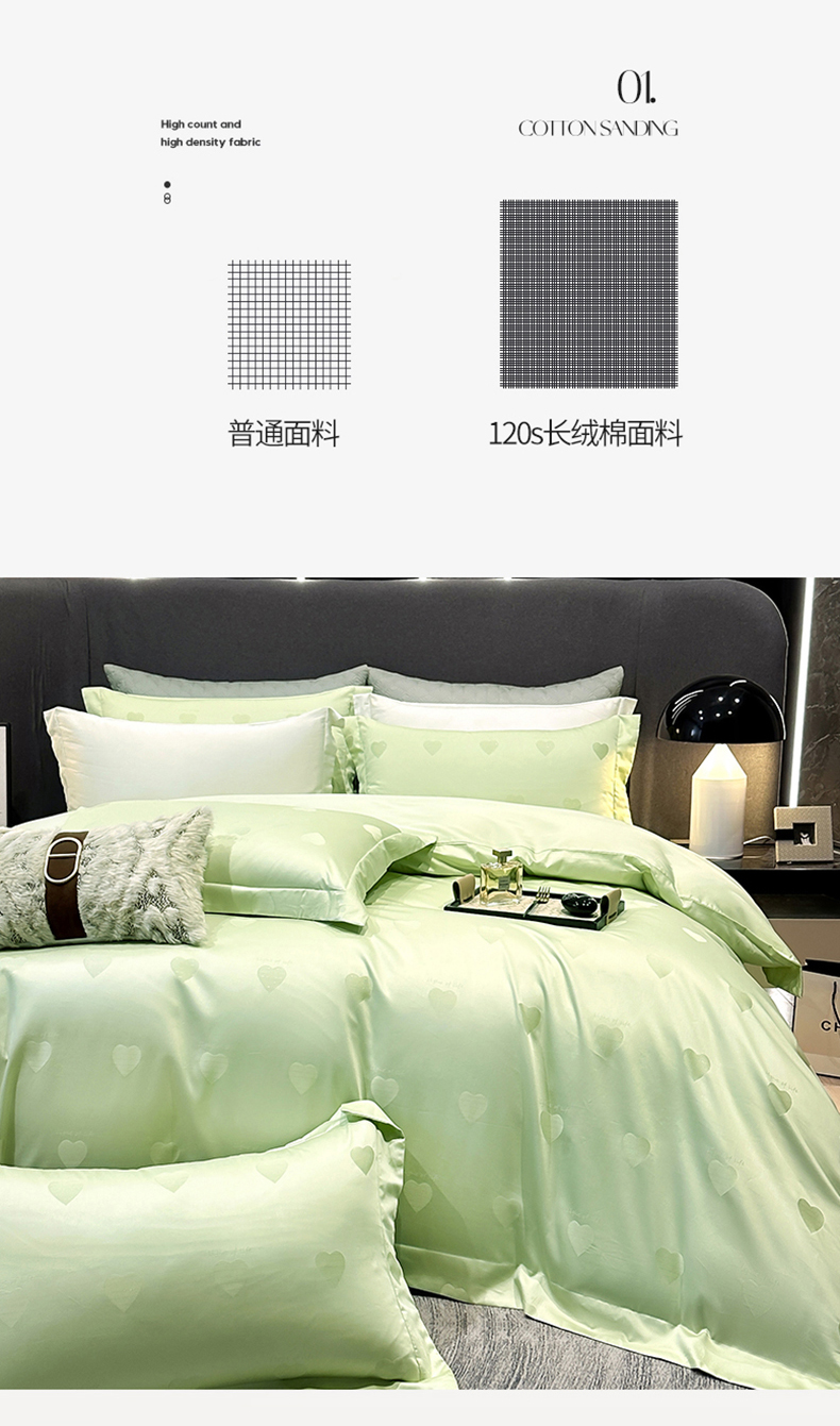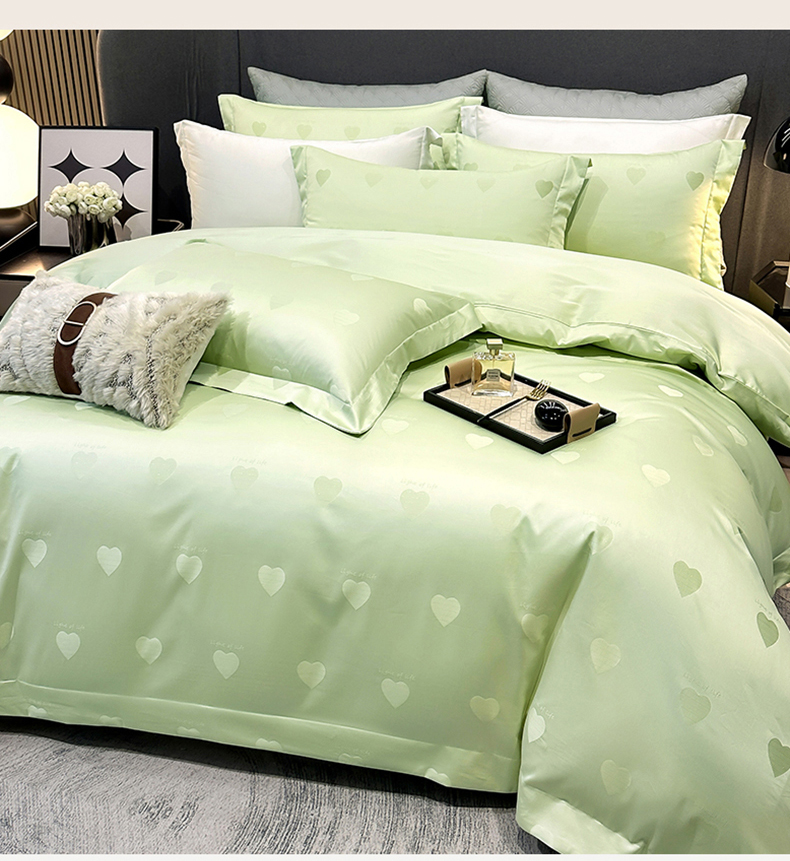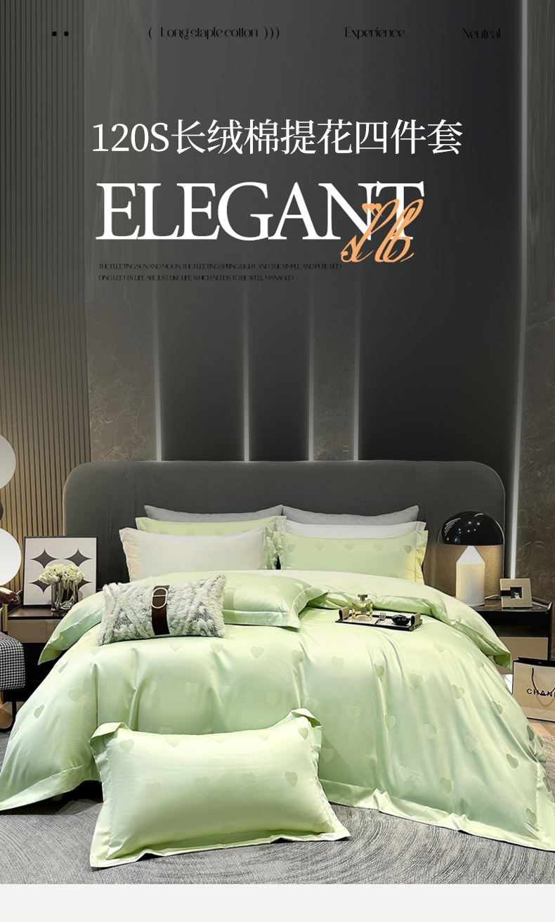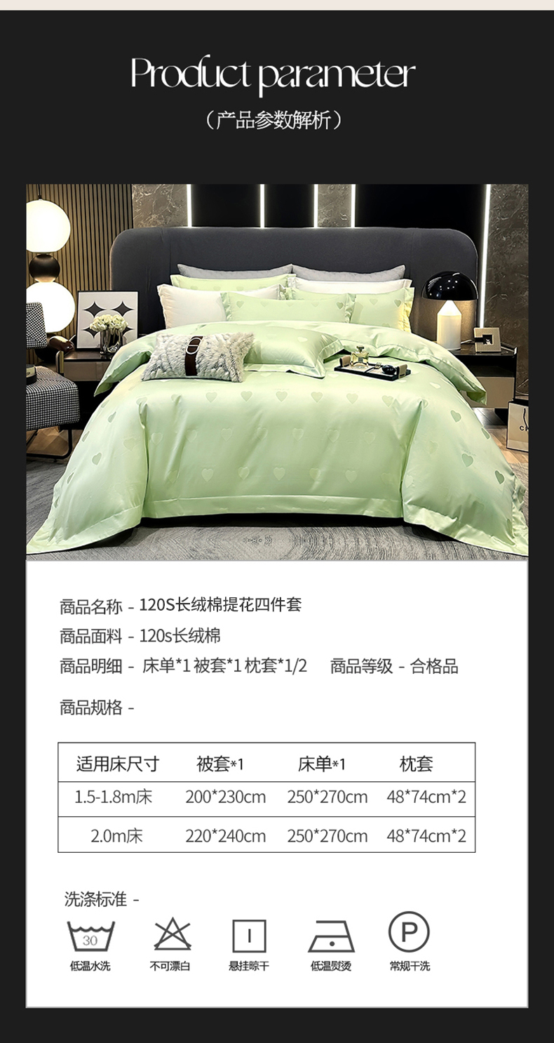 商品名称:2025新款双股长绒棉居家款提花系列四件套 心动-牛油果绿
