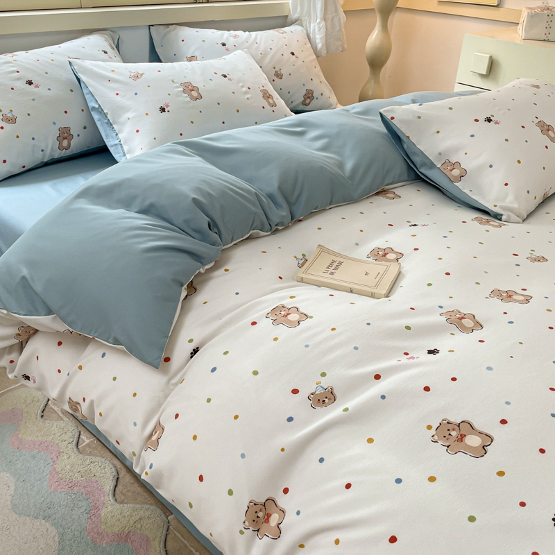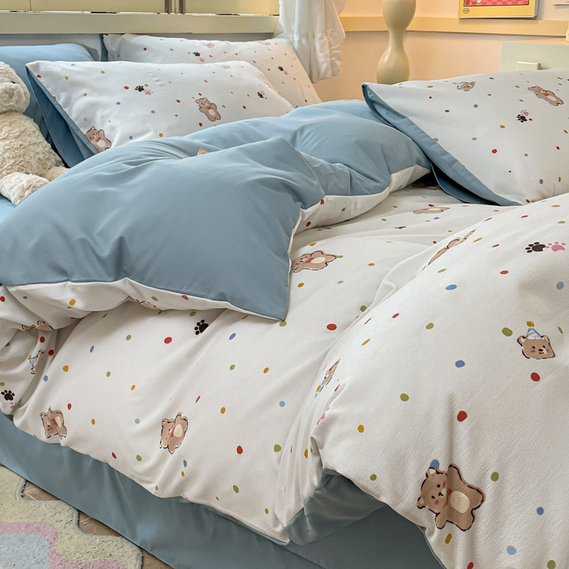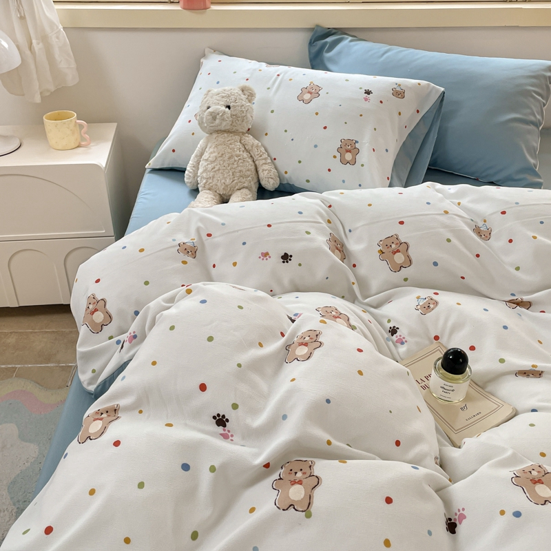当前位置: 91家纺网 > 商品网购 > 床品套件 > 四件套 > 全棉普通四件套 > 玉海棠 2024新款AB版软糯针织棉印花四件套 饼干熊-