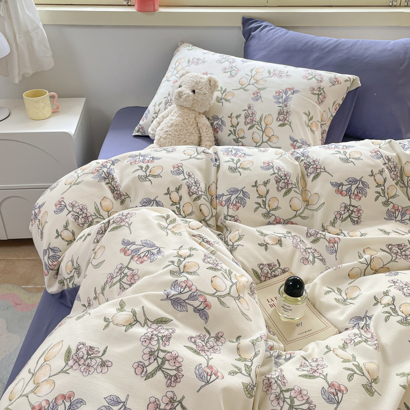 当前位置: 91家纺网 > 商品网购 > 床品套件 > 四件套 > 全棉普通四件套 > 玉海棠 2024新款AB版软糯针织棉印花四件套 果香-