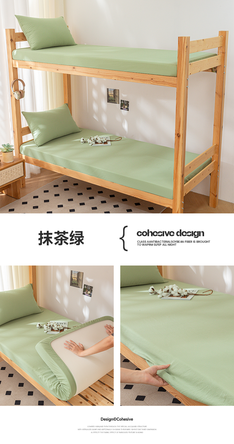 商品名称:寐眠 2024新款A类全棉水洗棉学生床笠系列 抹茶绿