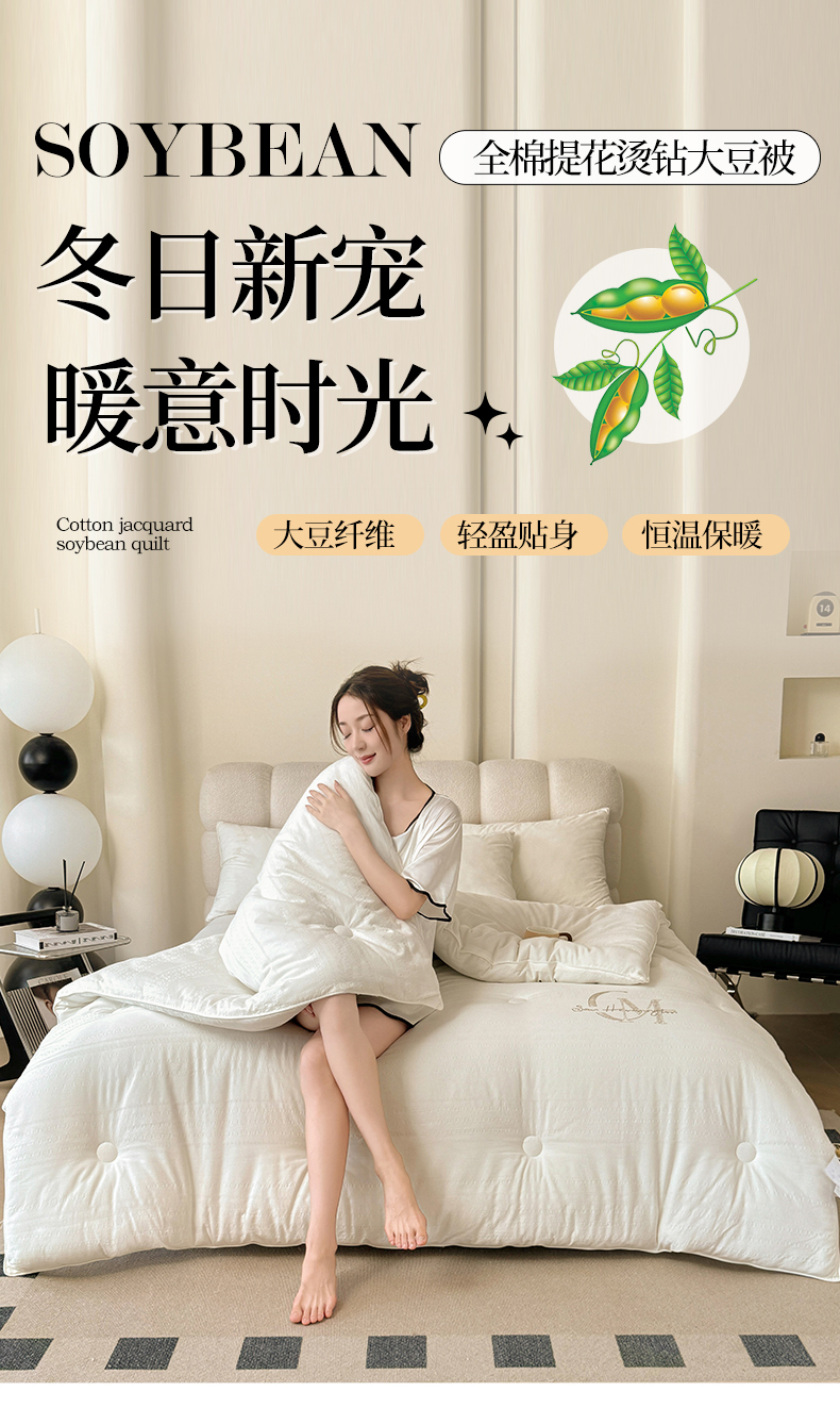 商品名称:(总)歌历斯家纺 2024新款全棉水洗棉提花烫钻大豆被子被芯