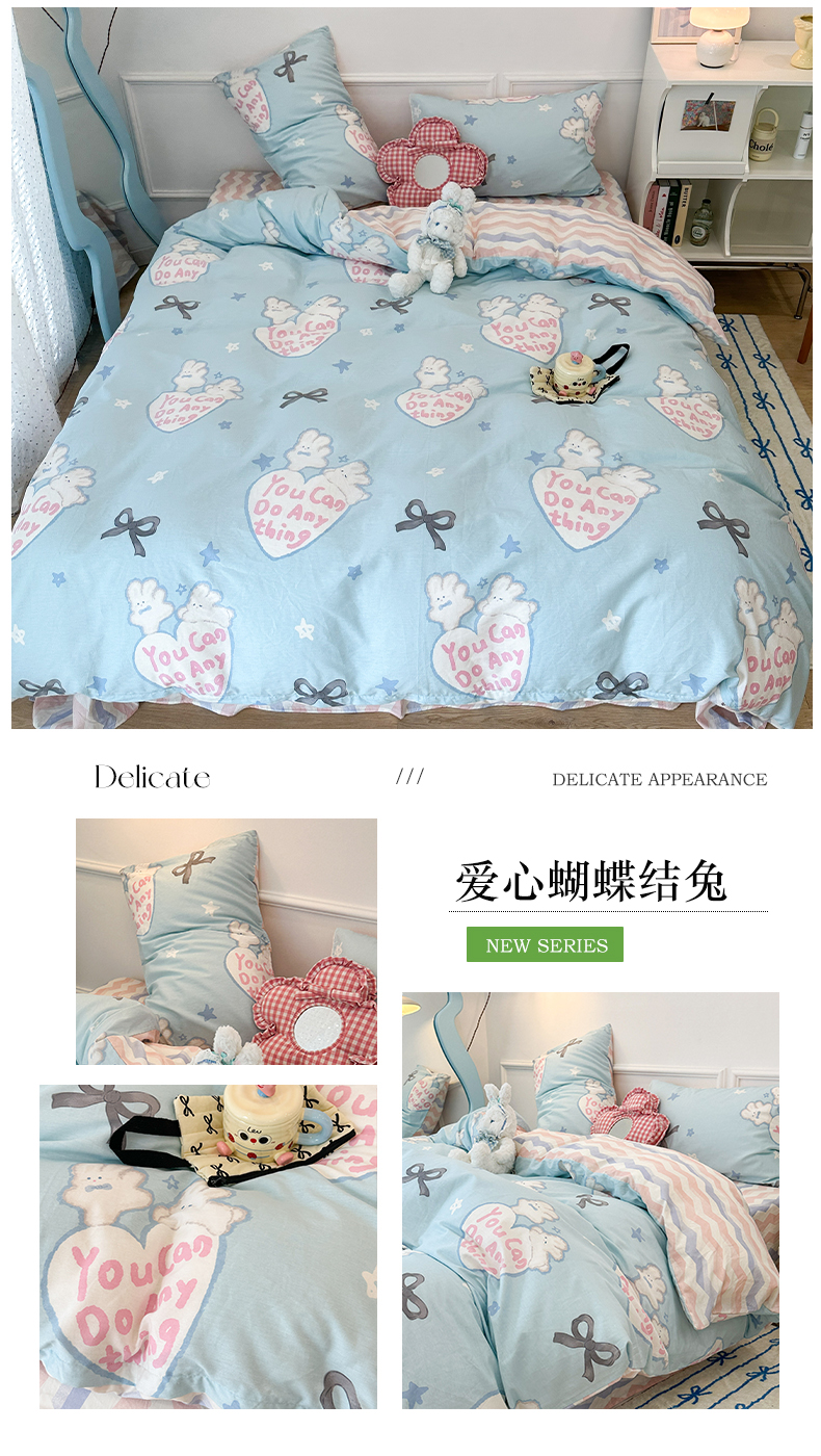 商品名称:2024新款13070跑量款全棉四件套--卡通系列 爱心蝴蝶结兔